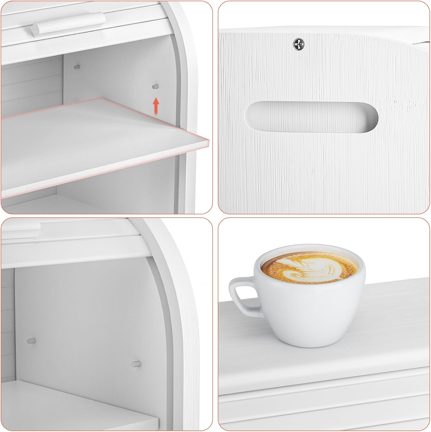 - Roll-up Door Design: Adding retro and classic elements to the bread box, the door of the bread box can be opened and closed easily by pushing and pulling, adding some special decoration to your kitchen.