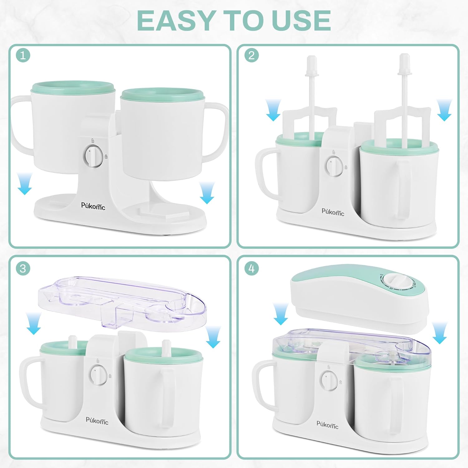 Pukomc Ice Cream Maker Machine for Home Use, with Two Ice Cream Bowls,Simple Operation and Easy to Clean,White Green