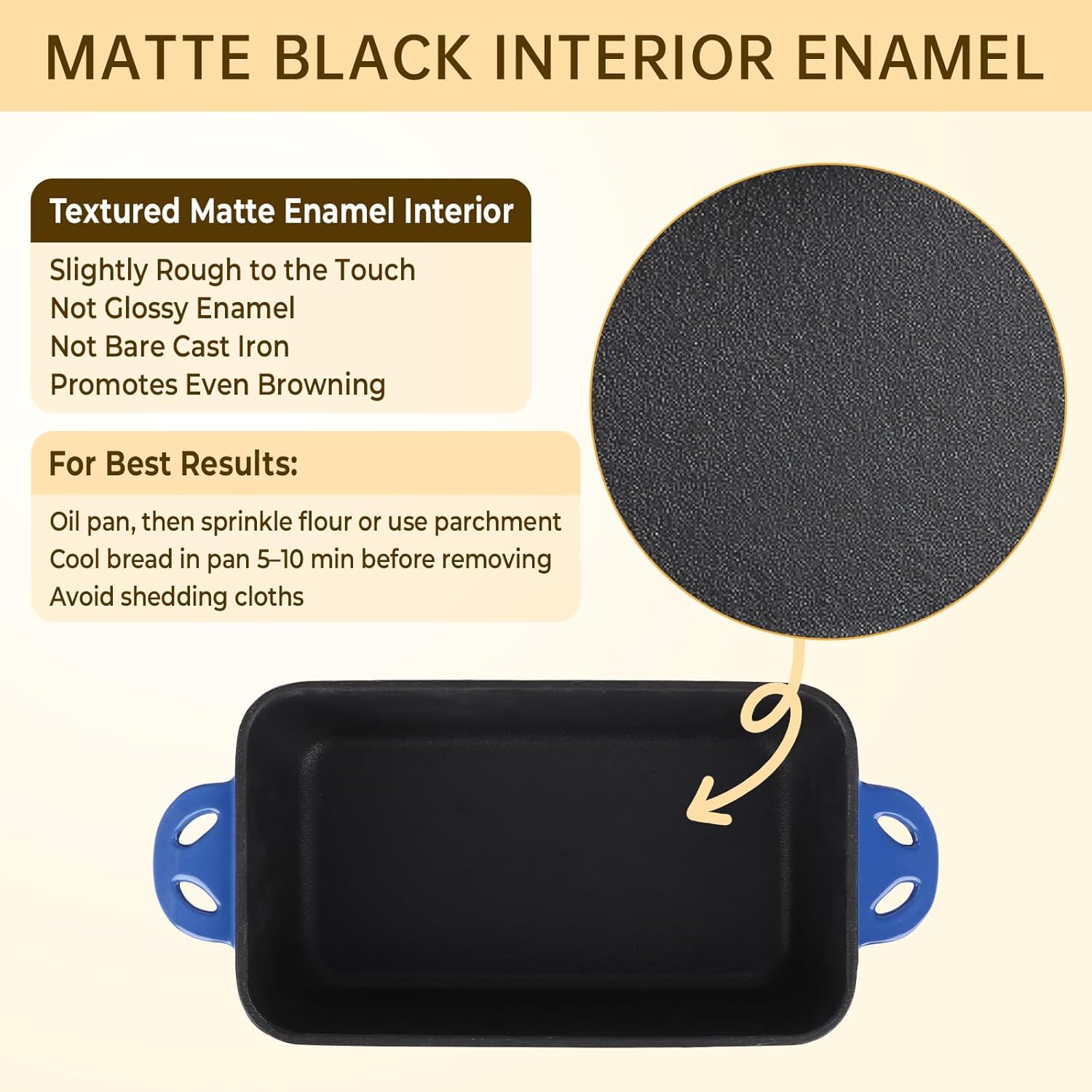 - Golden Crust: Enamel cast iron bread loaf pan with lid delivers even heat; creates a crispy crust and soft interior in sourdough, banana bread and sandwich loaves