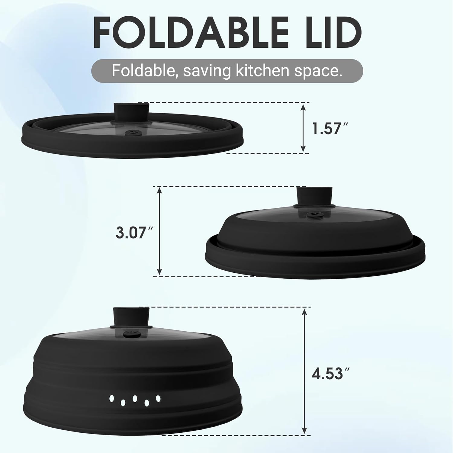 - Collapsible Design: This glass microwave cover for food features an adjustable height and can be folded into four different shapes, fitting various cookware sizes or needs. When folded, it takes up minimal space, making it easy to store—ideal for small kitchens or homes with limited space.