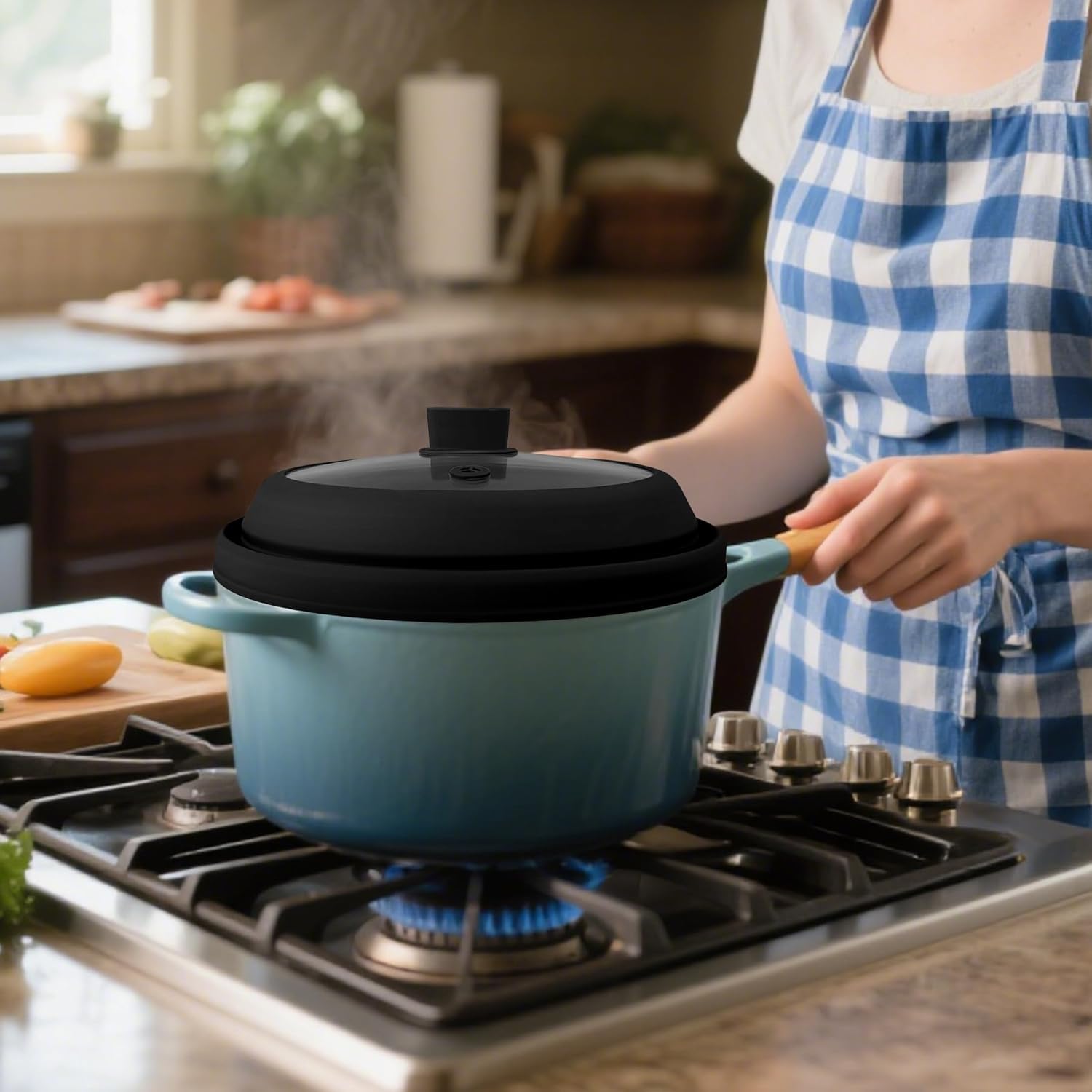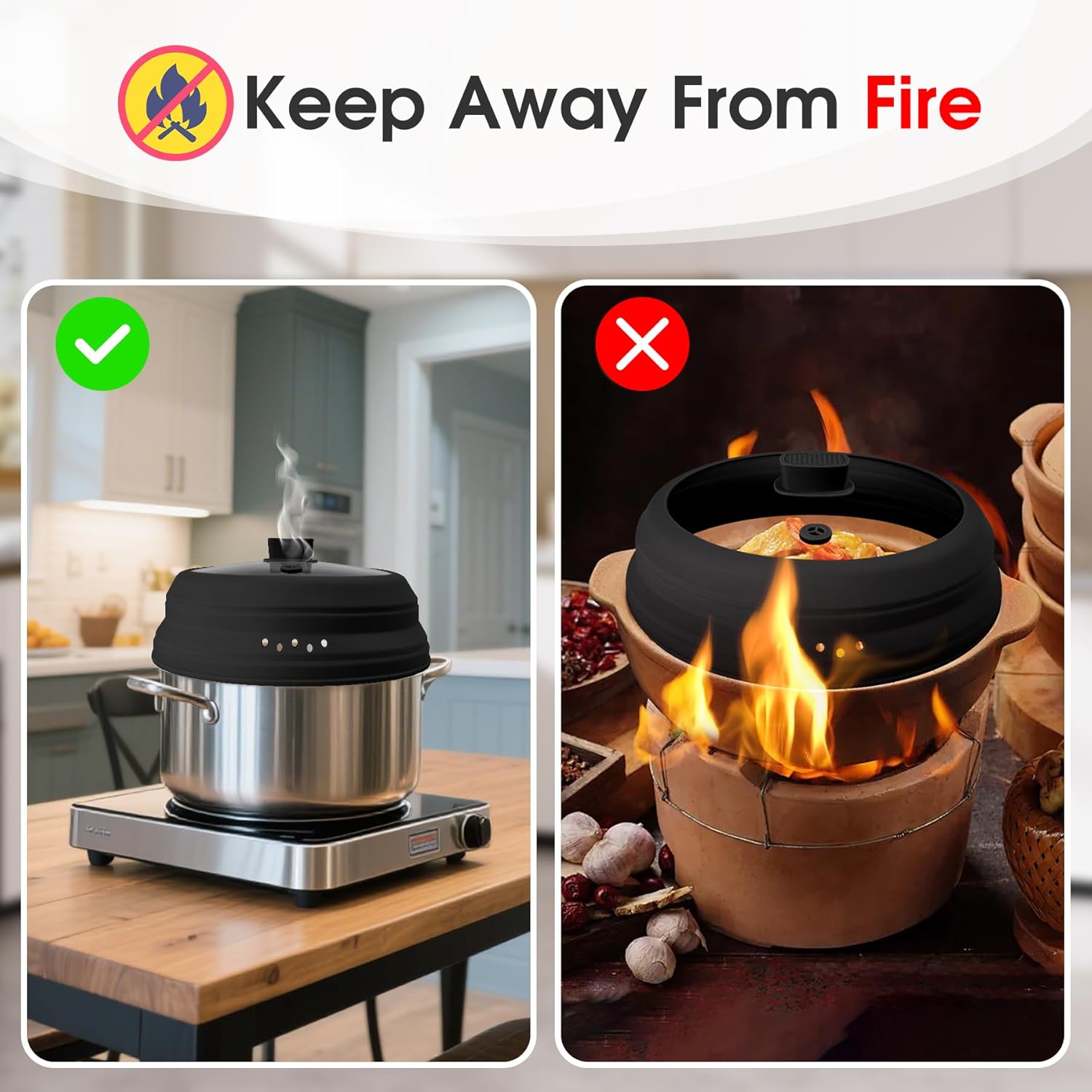 - Steam Vent Hole: The exhaust hole design effectively releases steam during the heating process, preventing excessive condensation inside the lid. This not only prevents water droplets from falling back onto the food, but also helps ensure more even cooking.