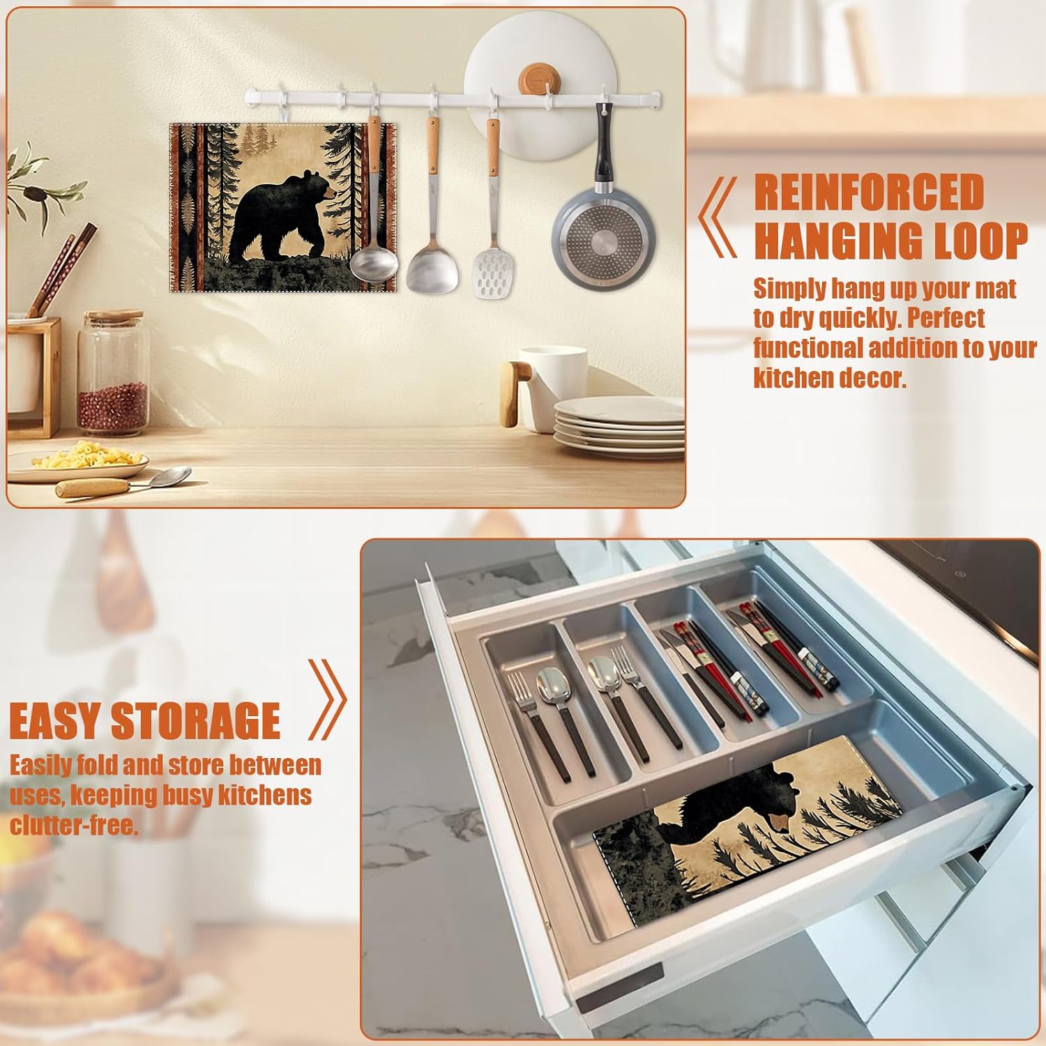 Forest Bear Dish Drying Mat for Kitchen Counter Microfiber Absorbent Dish Kitchen Drying Mat Draining Reusable Washable for Dishes/Utensils/Counterto