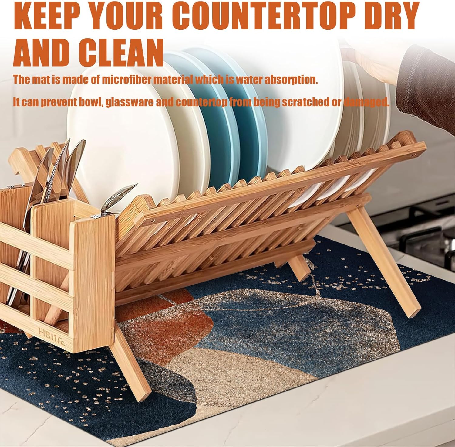- 【Quick Dry】: This dish drying mat for kitchen counter combines an absorbent microfiber surface with a composite sponge middle layer, allowing it to absorb up to 4 times its weight in water, keeping your counter dry easily. Whether it's pans, pots or dishes, this kitchen drying mat will soak up all the remaining moisture and leave the underside dry.