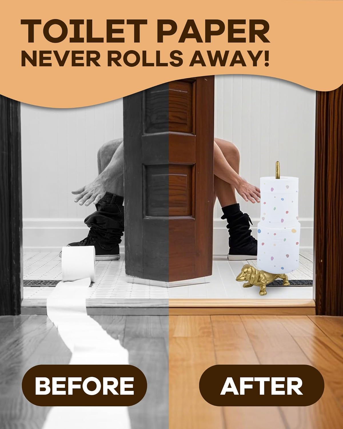- π CHARMING DOG DESIGN WITH STABILITY - Crafted from solid cast iron with elegant gold electroplating, this freestanding paper towel holder features a 1,450g (3.2lbs) weighted base preventing tipping while adding adorable charm to your space. Perfect bathroom or kitchen countertop accessory that combines function with style.
