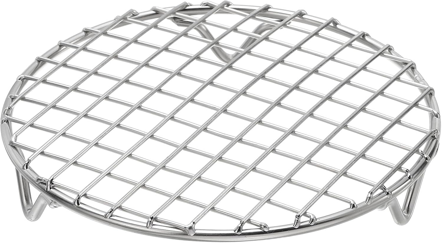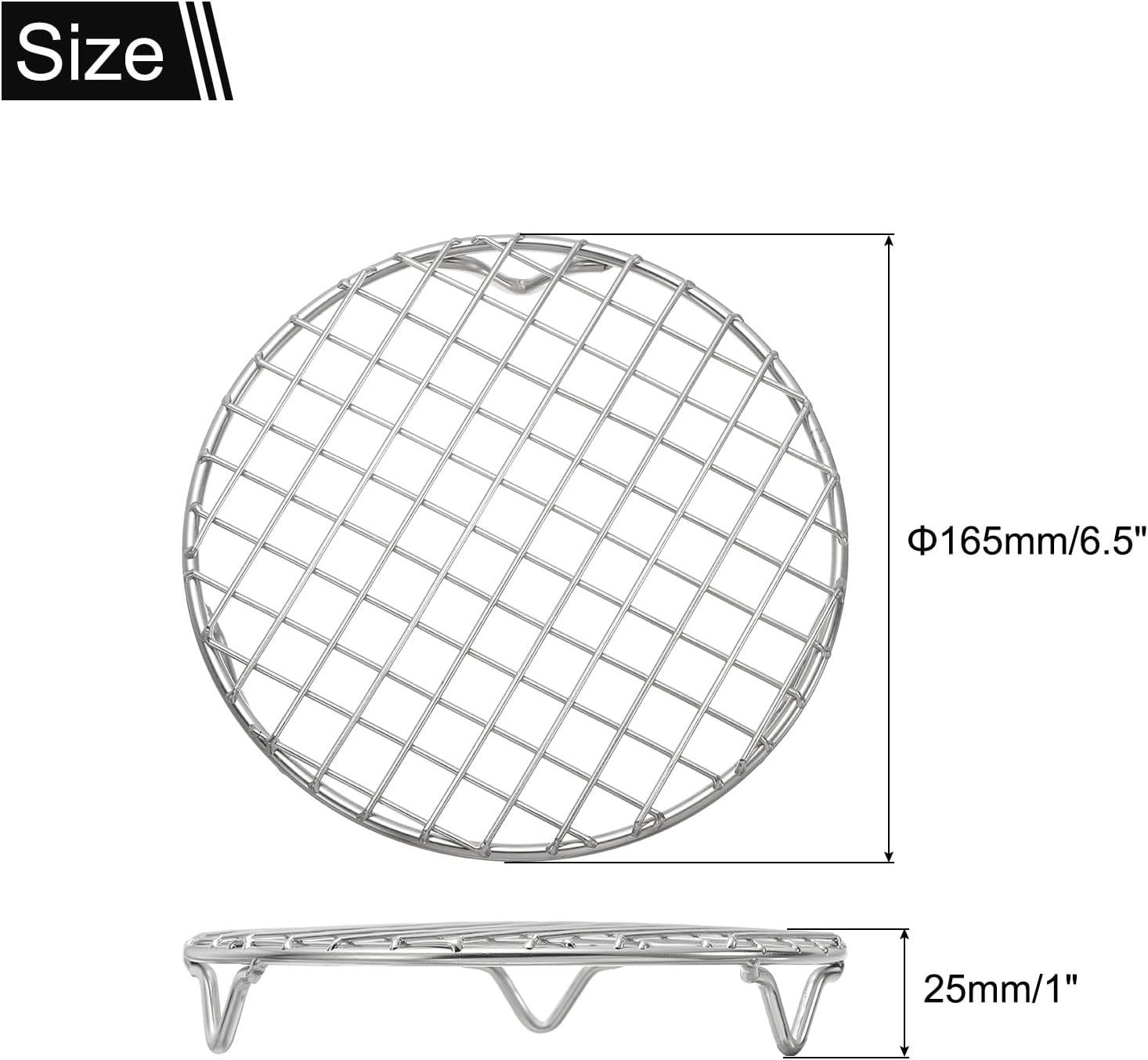 uxcell Round Cooking Rack with Legs, Dia 6.5 Inch 304 Stainless Steel Barbecue Grill for Cooking Baking Barbecue Air Fryer Racks, Silver