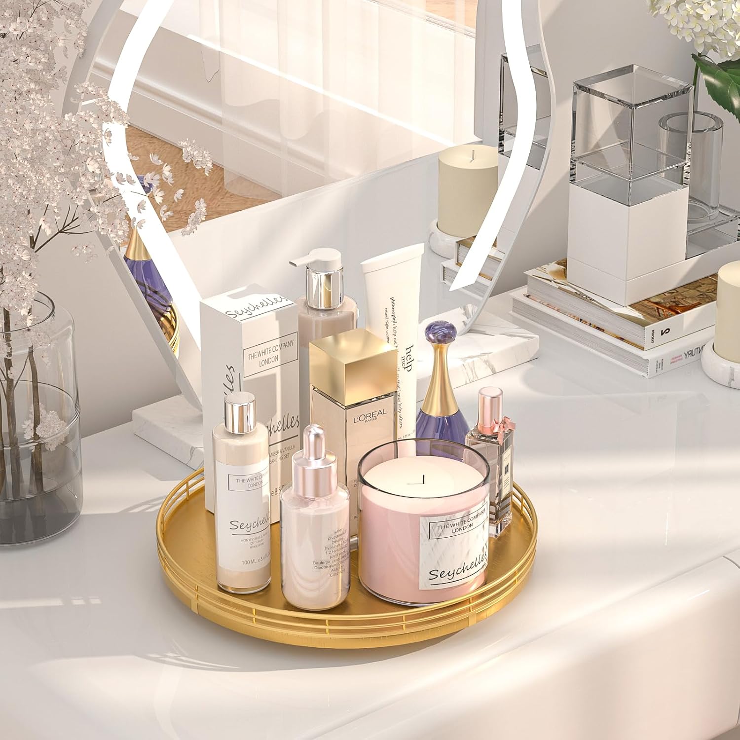- Thoughtful Design: The turntable gold tray features a smooth and silent 360°rotation; Bottom slip-resistant pads for stability and protect your countertop from scratches; Raised edges on each organizer tray to keep items from falling out; Easy to use, no installation required