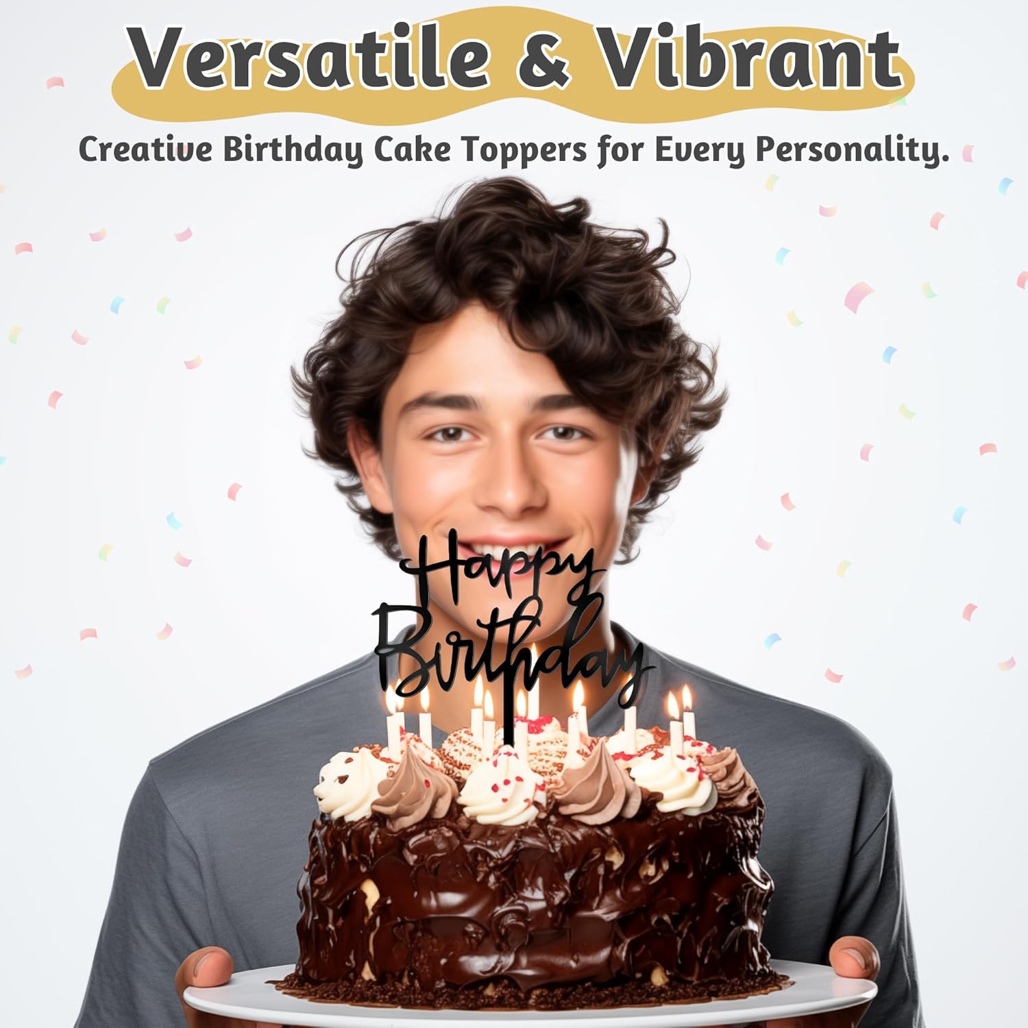 - Classic Design: This black happy birthday cake topper is designed with the words "Happy Birthday" in black, adding a touch of elegance to any celebration cake. Its versatile design lends itself to masculine, feminine and neutral themes.