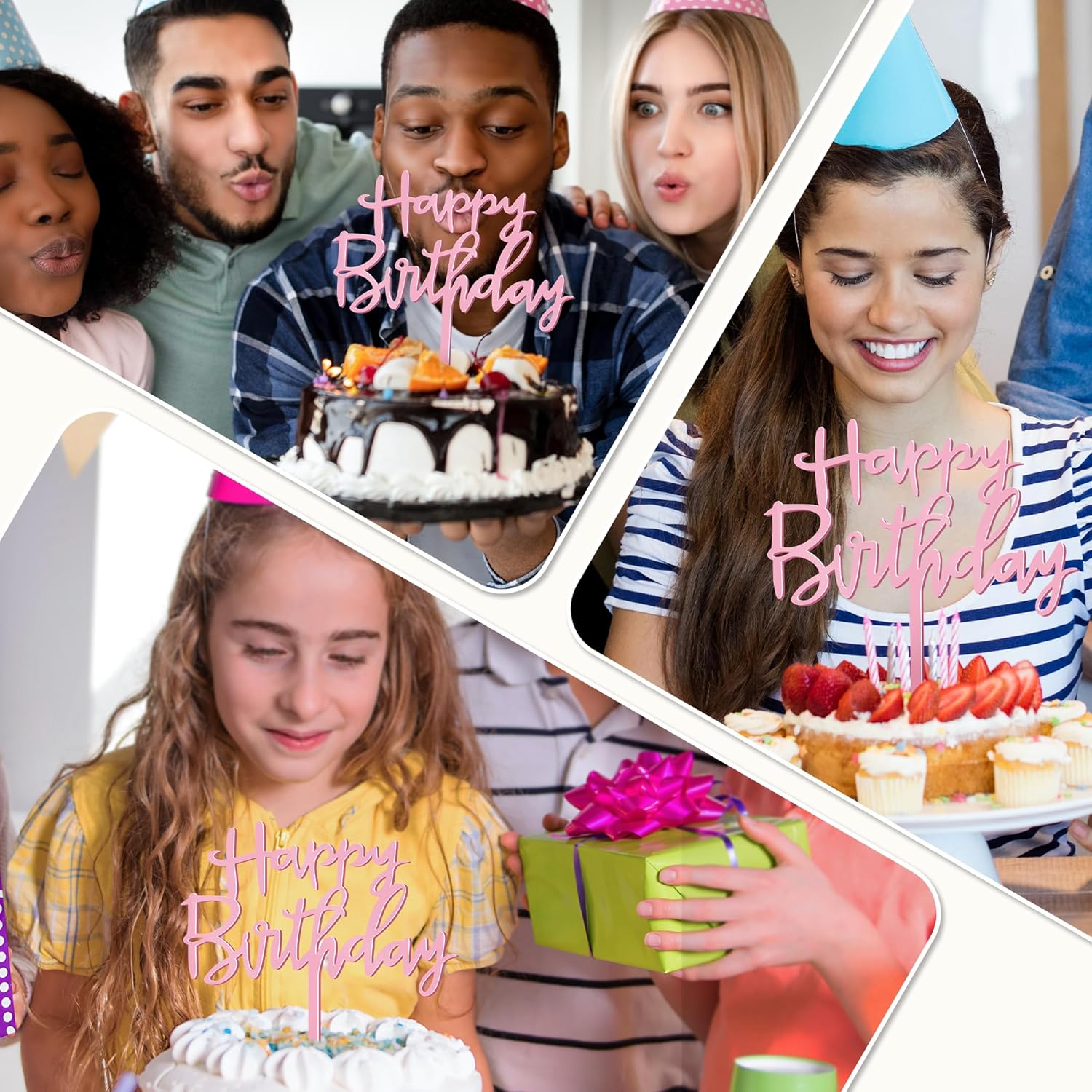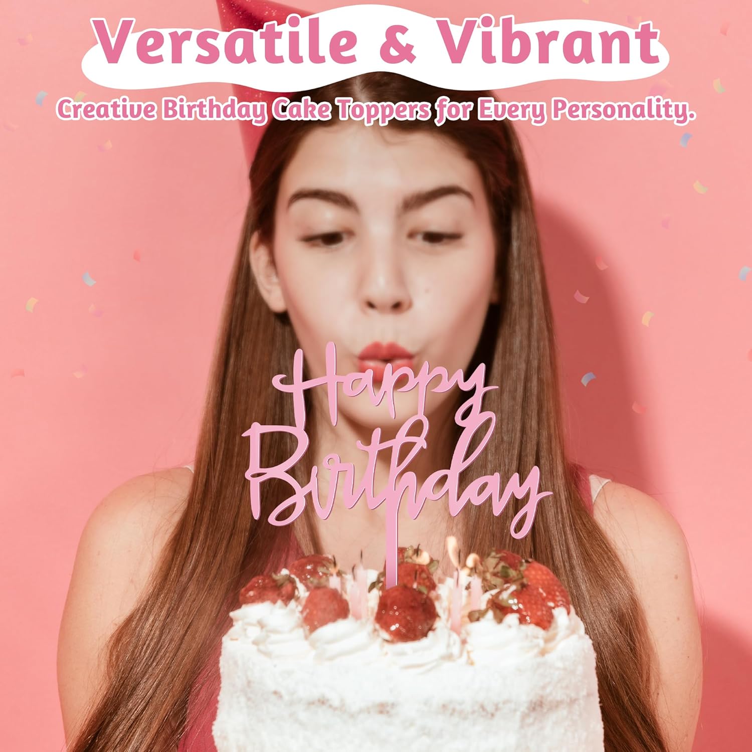 - Versatile Use: This pink cake decorations can be used to decorate cheesecakes, ice cream towers, or even wedding dessert tables. The eye-catching “Happy Birthday” lettering can also be used as a chic photo backdrop.