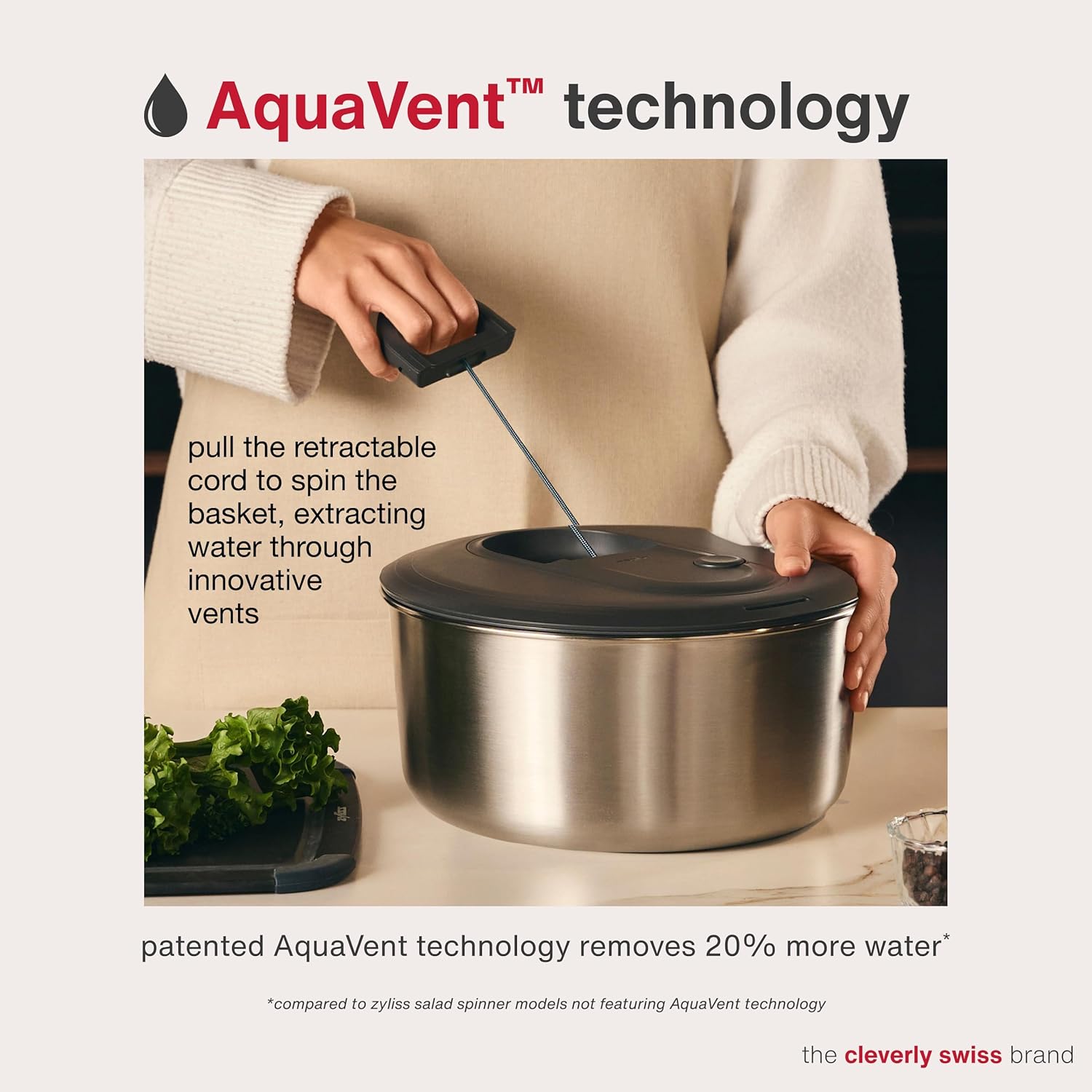 Zyliss Easy Spin Salad Spinner - Fruit & Veggie Dryer - Produce Spinner & Cleaner for Salad Prep - Dishwasher-Safe Kitchen Essential - Non-Slip Bowl with Pull Handle - New Stainless Easy Spin Large