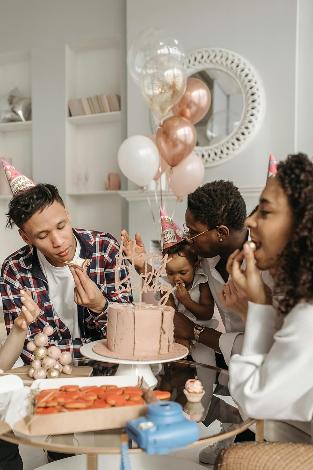 Happy Birthday Cake Topper - Glitter Rose Gold Birthday Cake Top Decorations (Rose Gold)
