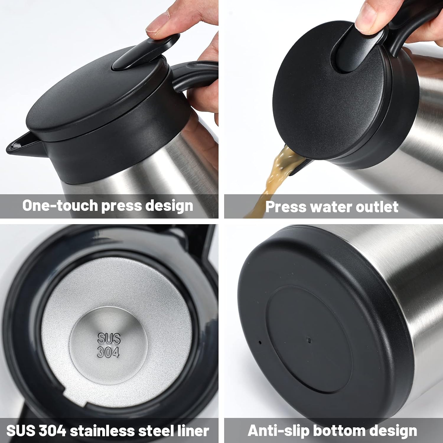 - SUPER QUALITY AND LONG LIFESPAN | Made from the 18/8 stainless steel,this coffee carafe thermoses will never rust,bend or break with regular use. This coffee pump dispenser is made up of durable stainless steel built to withstand the demands of everyday use.