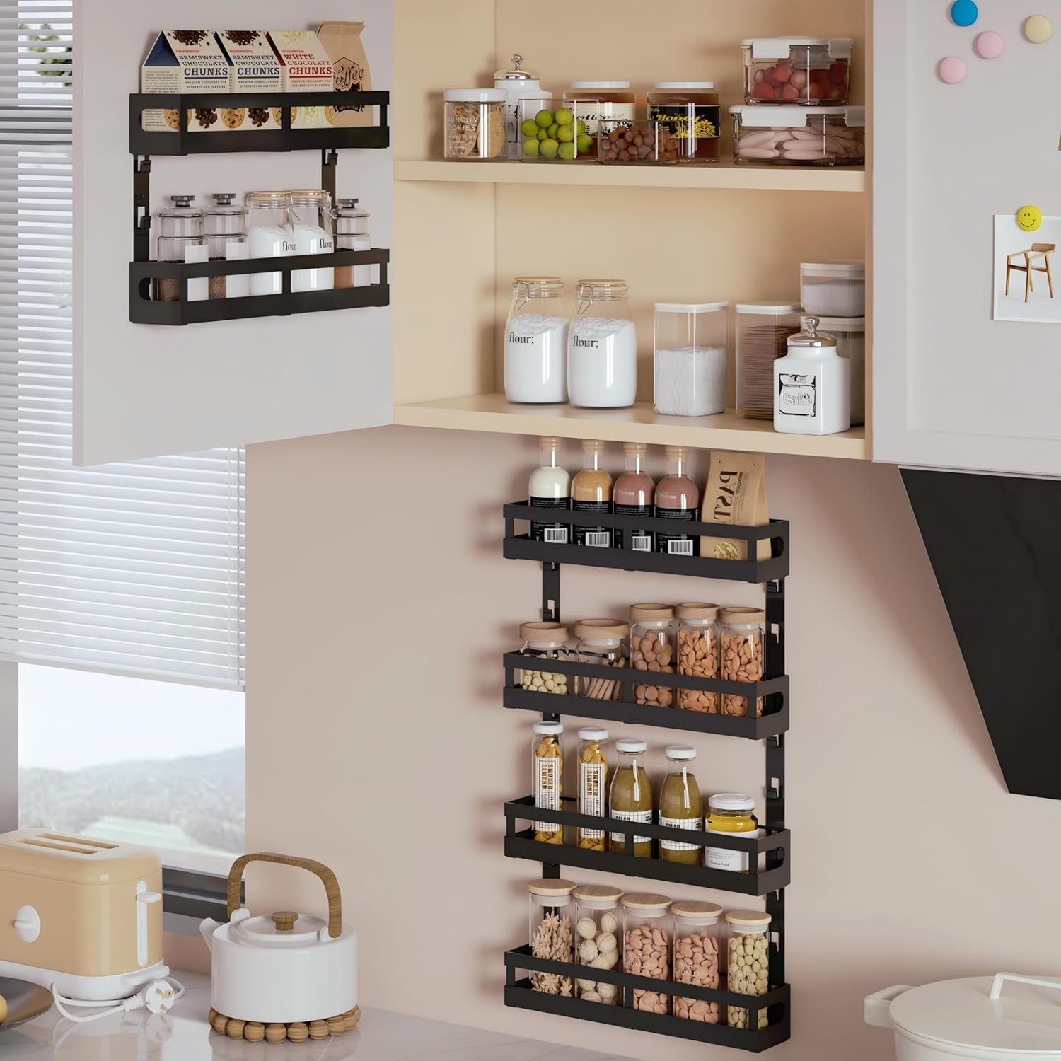 4-Tier Small Wall Mounted Spice Rack Organizer, Hanging Spice Shelf for Cabinet or Pantry, Height-Adjustable Seasoning Holder for Kitchen Storage, Black