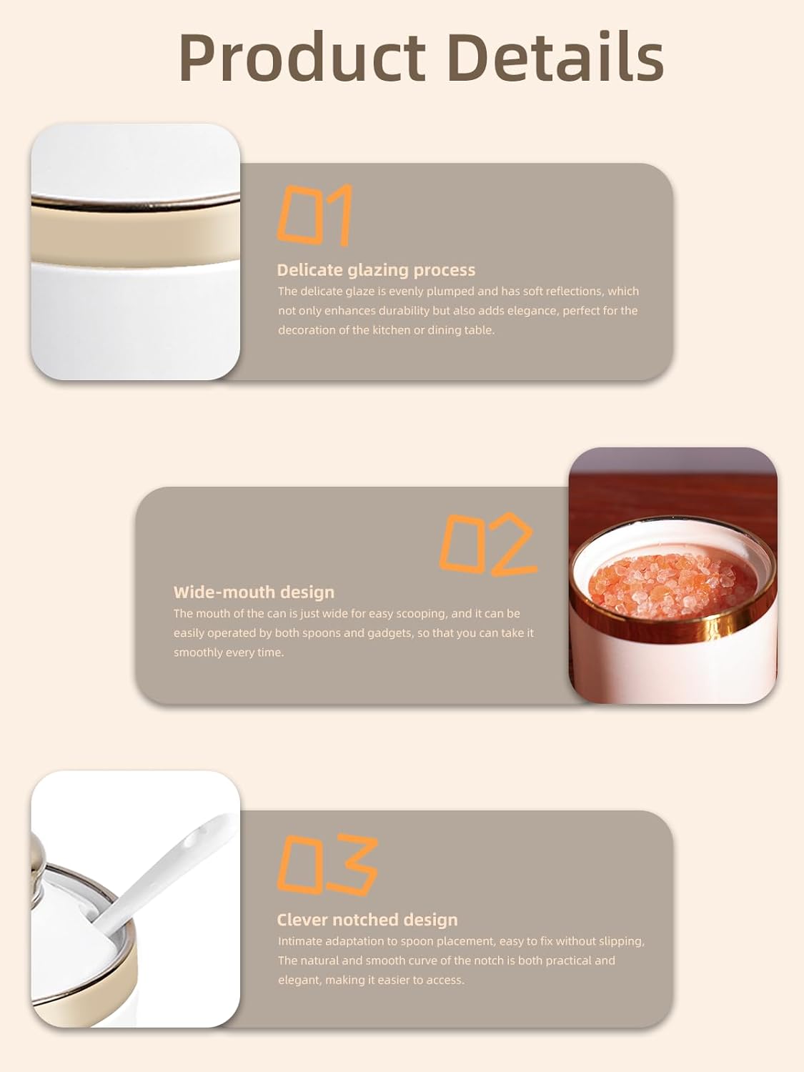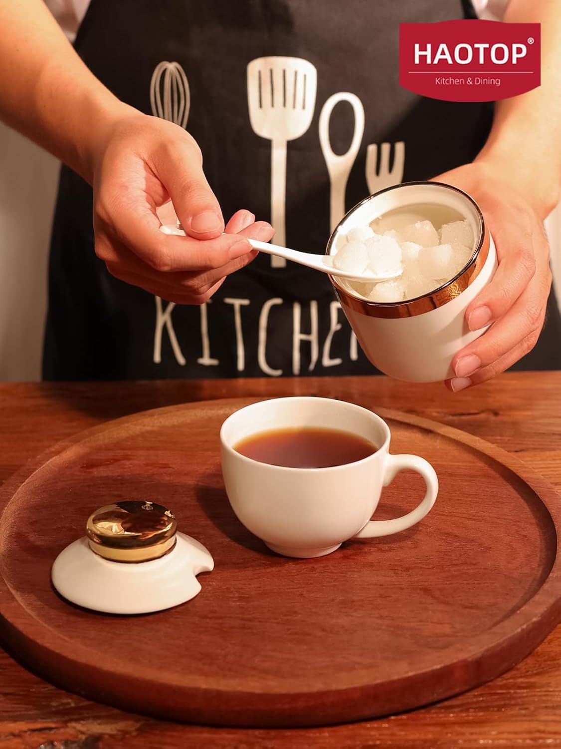- DESIGN CONCEPT: This simple sugar bowl is equipped with a lid and a small spoon. The lid can keep your ingredients away from dust. There is a perfect notch on the lid for placing the spoon, so you don’t have to worry about placing the spoon randomly