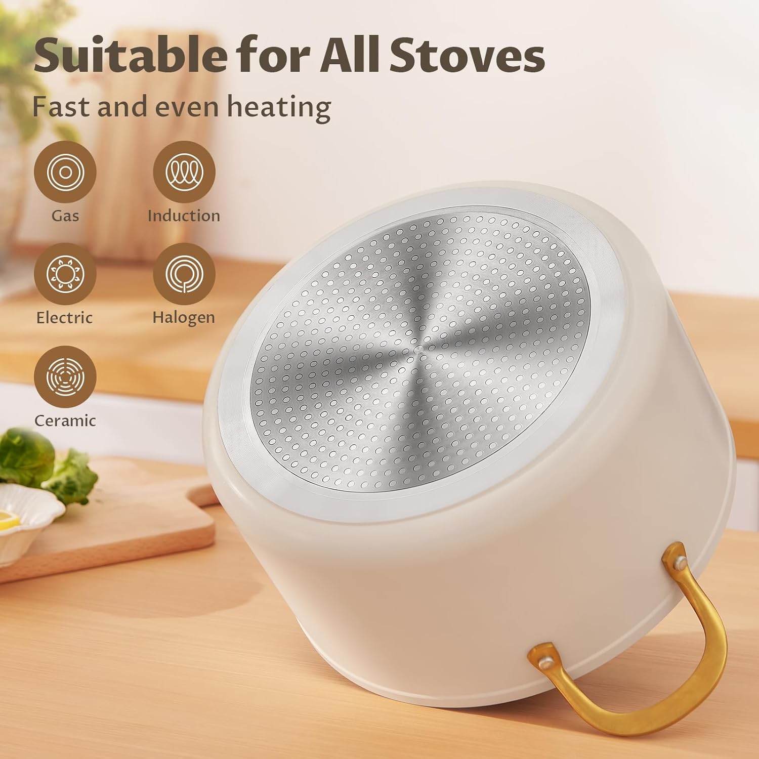 - ใ๐๐ฎ๐ฅ๐ญ๐ข-๐๐ฎ๐ซ๐ฉ๐จ๐ฌ๐ ๐๐จ๐จ๐ค๐ข๐ง๐ ใ Innovative magnetized base conducts heat well, this stockpot is designed to meet a variety of cooking needs, and is suitable for use on all stovetops, such as gas, electric, induction, and so on. Perfect for making sauces, pasta, stews and more