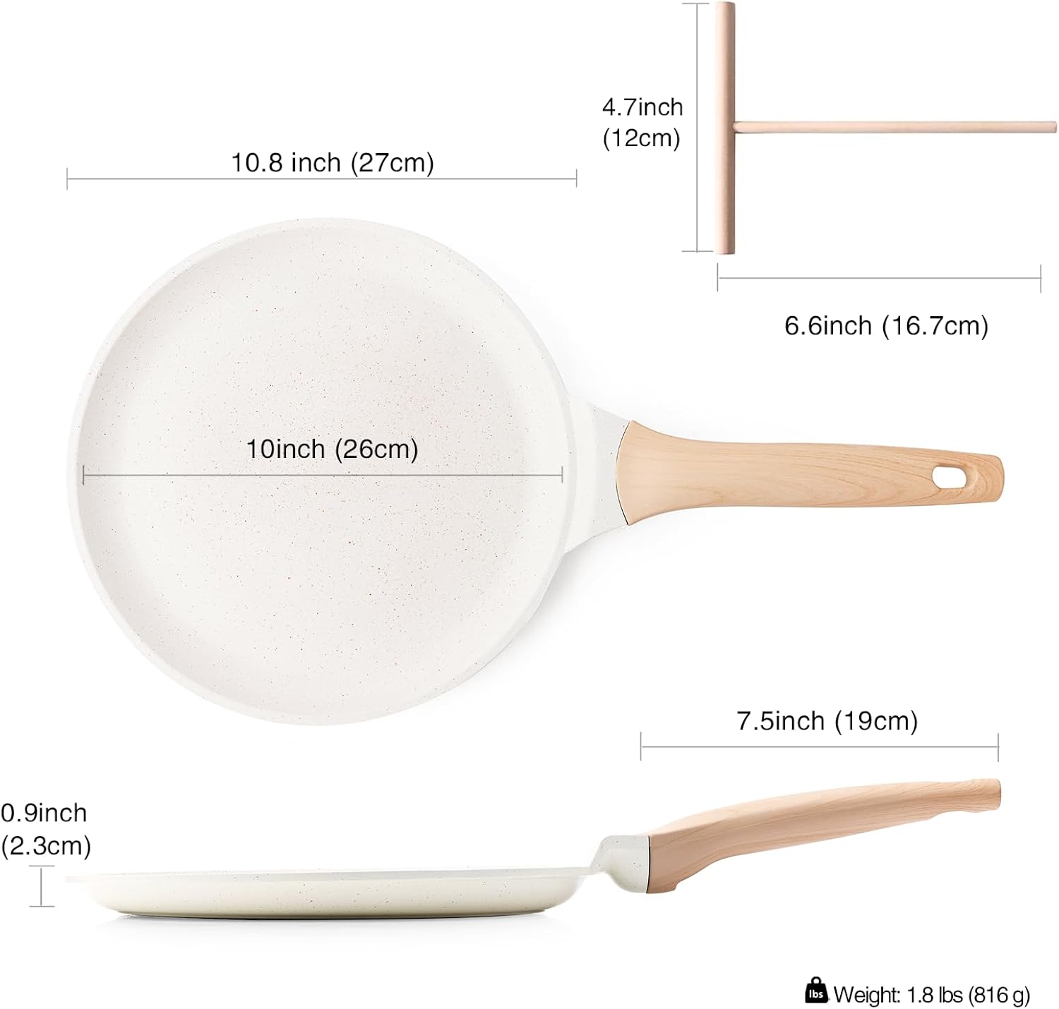 Crepe Pan Nonstick, 10 Inch Healthy Coating Comales para Tortillas Dosa Pan with Spreader, Induction Compatible, PFOA Free (White)