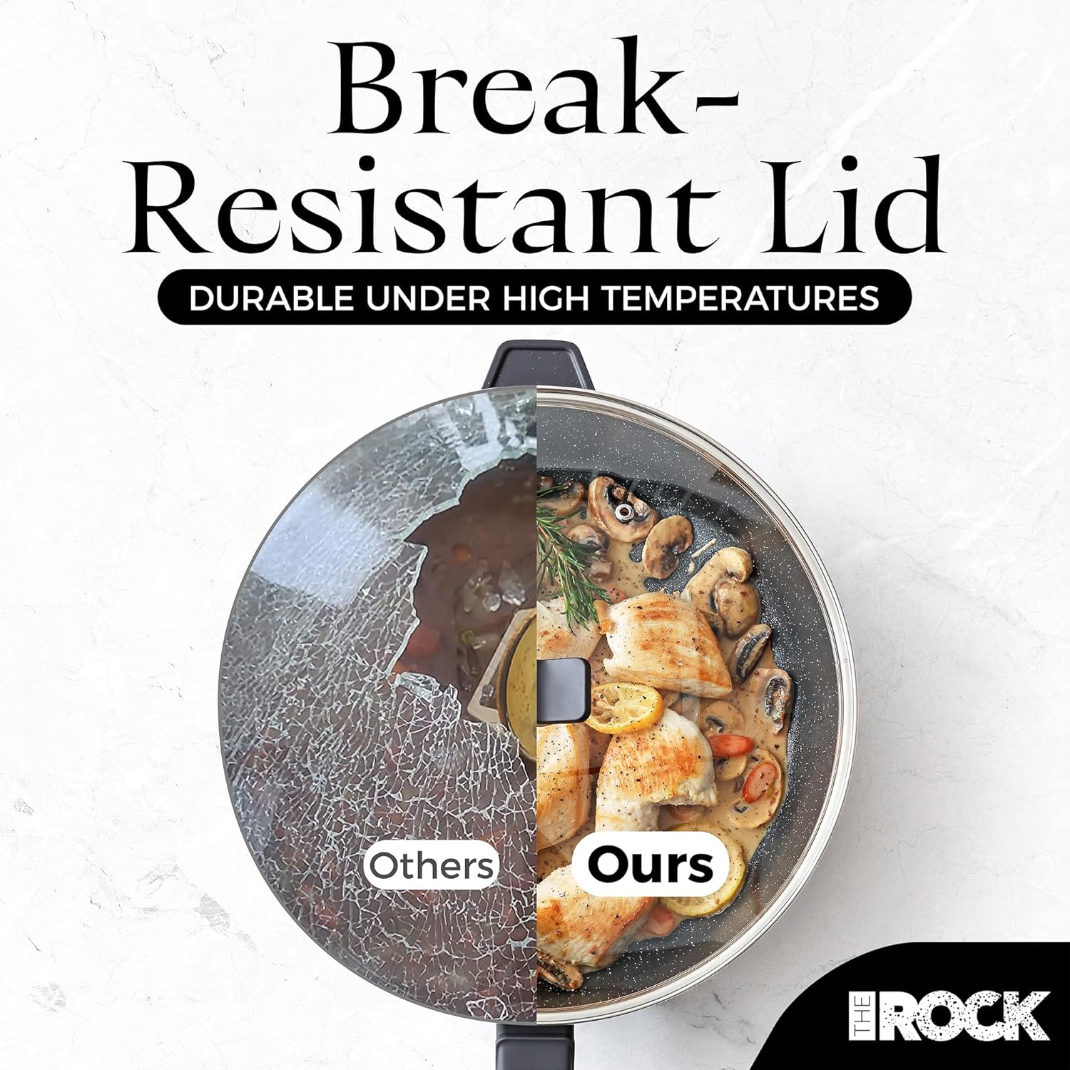 THE ROCK SOHO 4 Qt Nonstick Deep Frying Pan Skillet with Glass Lid, 11 Inch Large Deep Frying Pan, Non Stick Saute Pan – Stay-cool Handle, Induction Compatible, Oven & Dishwasher Safe, Black