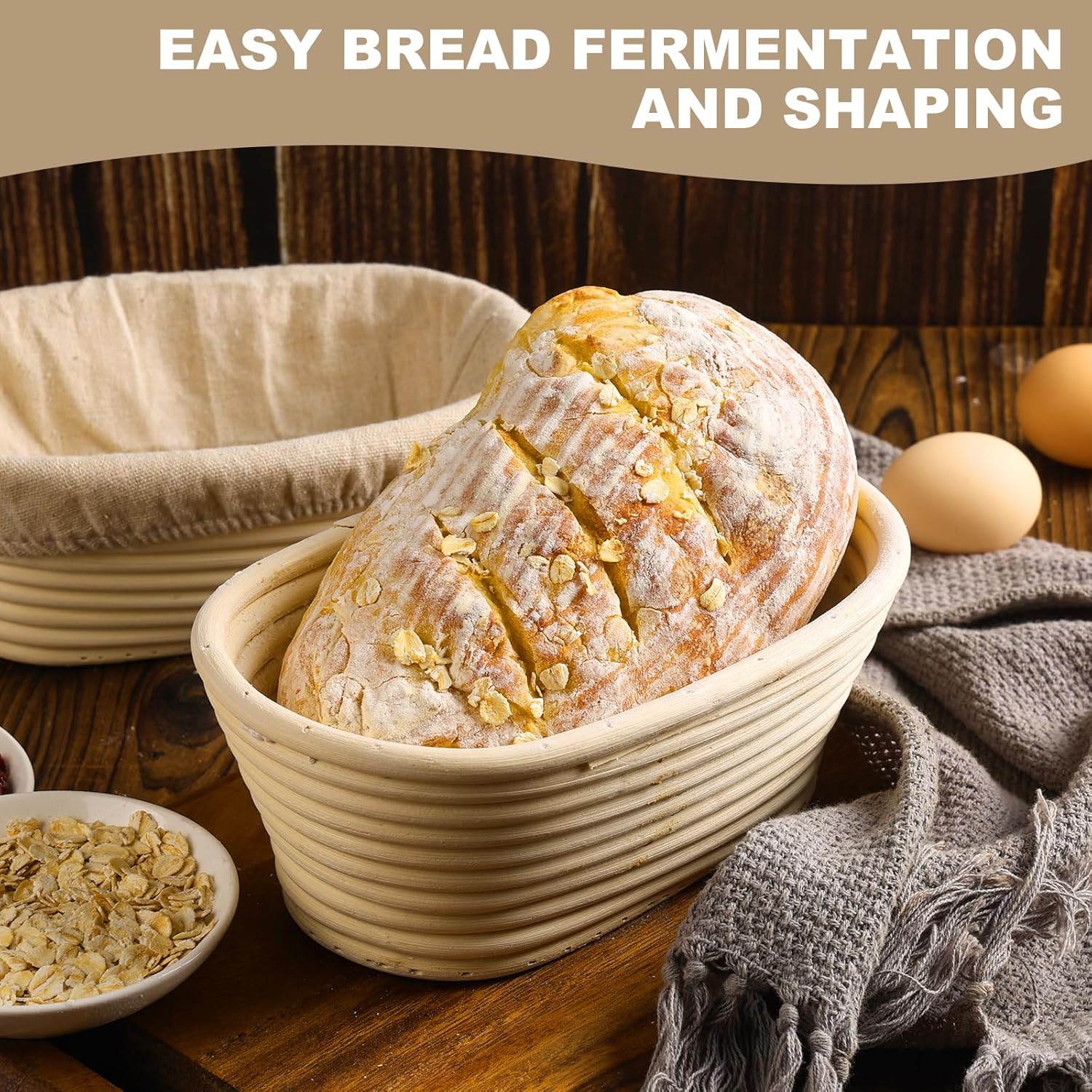 Banneton Bread Proofing Basket - Banneton Basket Set of 4 Pack 10 inch Oval Sourdough Proofing Basket with Liner - Handmade Rattan Proofing Rising Bowl for Artisan Bread Making Baking Supplies