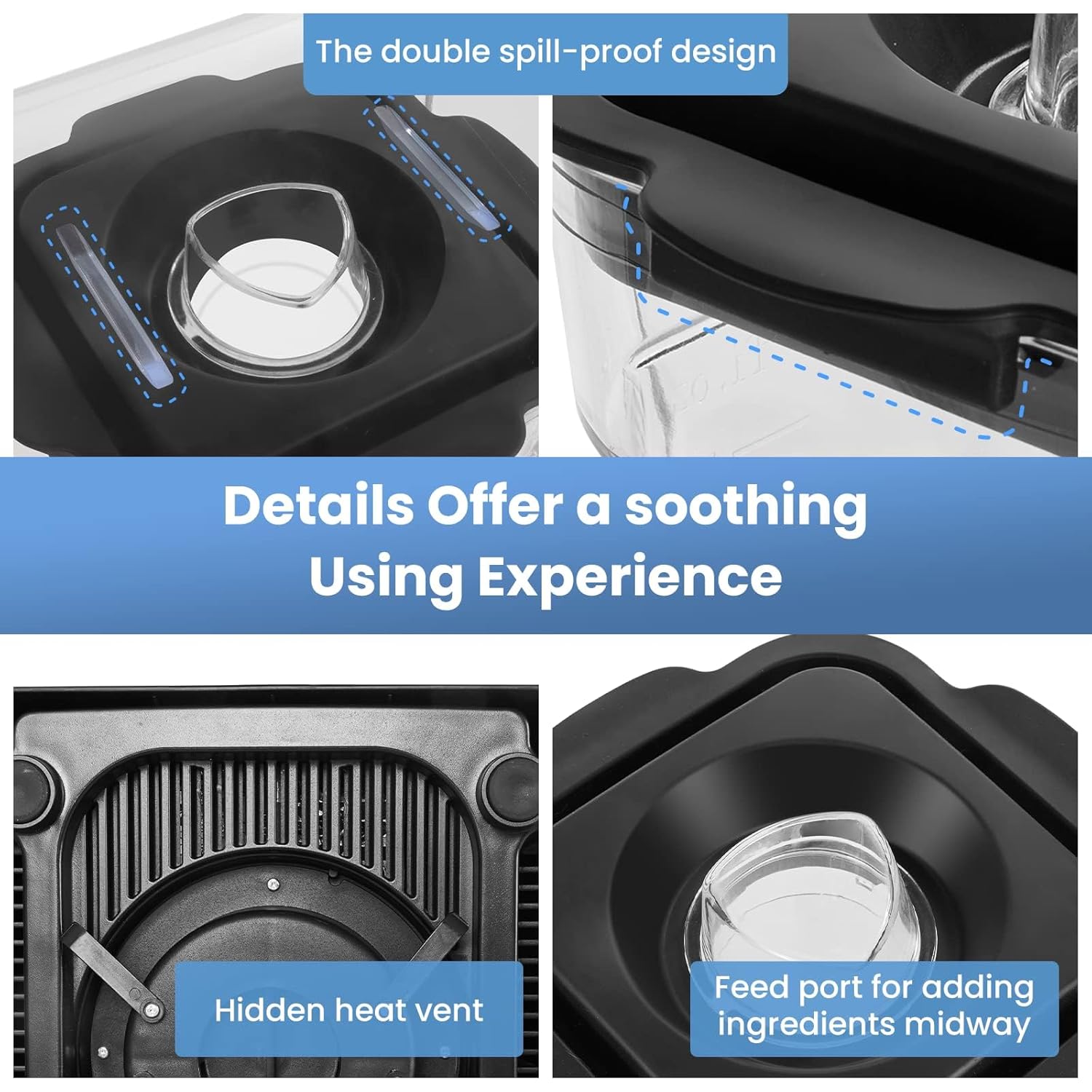 - Noise control: SYBO blender, with a 4D system, advanced noise reduction & smart tech, suits commercial kitchens. Its 48oz pitcher handles smoothies, nuts, shakes & ice crushing.