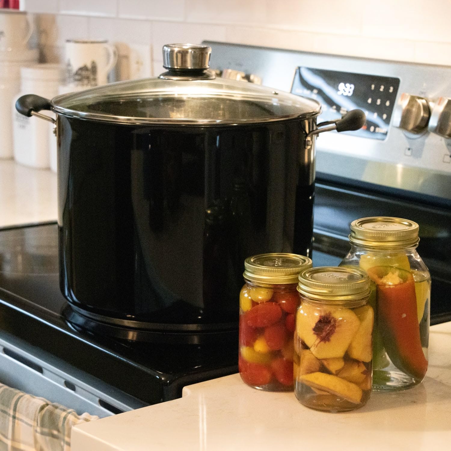 Lehman's 21.5-Quart Water Bath Canner with Pressure Gauge, Durable Stainless Steel Stockpot for Home Canning and Preserving, Black