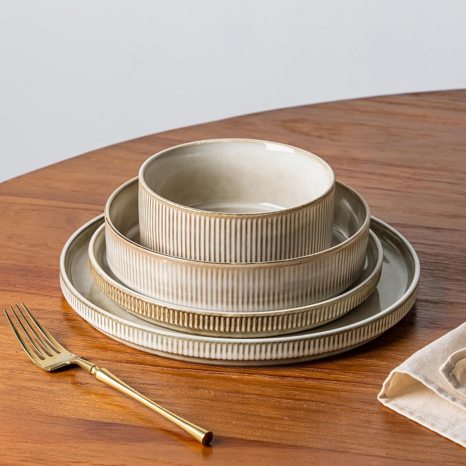 - Healthy, Lead-Free & Chip-Resistant: Crafted from premium, double-fired ceramic, this dinnerware is lead-free and cadmium-free, ensuring no harmful chemicals leach into your food. The durable stoneware construction makes it exceptionally chip-resistant and built for long-lasting daily use.