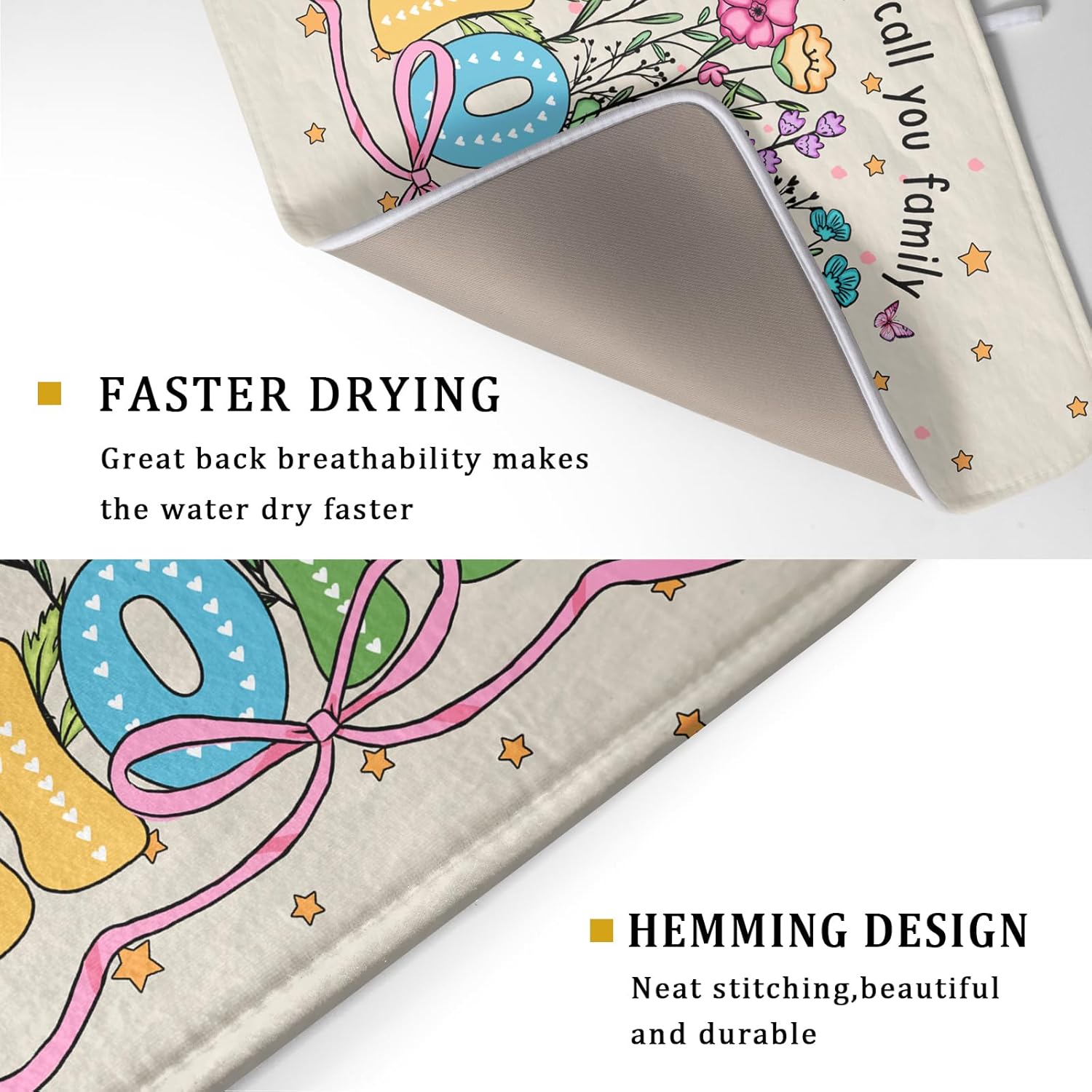 Colorful Home Dish Drying Mat Cute Home Microfiber Absorbent Kitchen Counter Pad 18 X 24 in for Dining Coffee Bar Decor