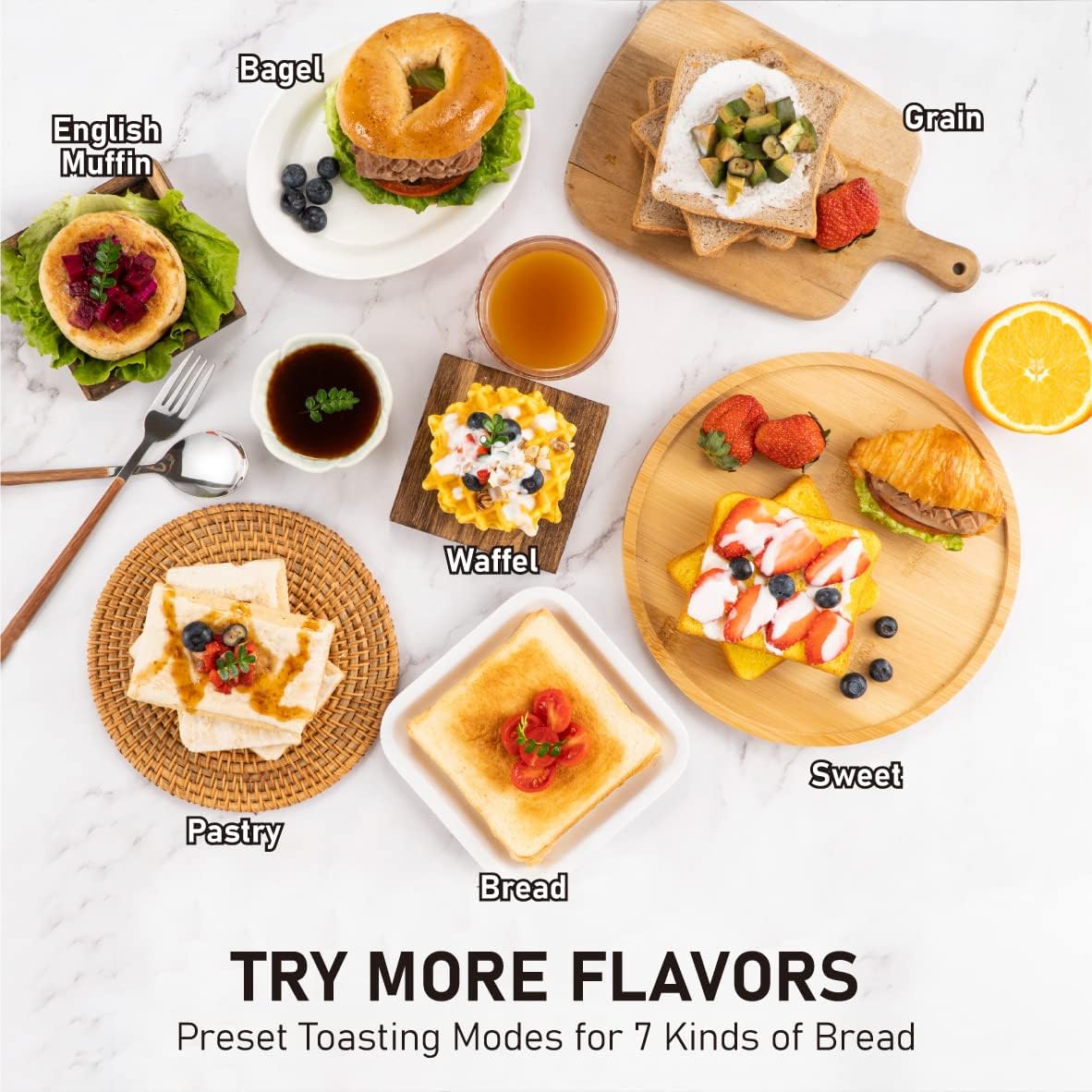 - Muitl Functions with Wide Slots: This 2 slice toaster with 1.5in wide slots is designed for versatility, offering 7 different bread type functions including bread, bagel, muffin, waffle, and pastry. The 7 shade settings let you easily customize your toast's crispiness, whether you prefer it lightly browned or extra crispy. With defrost, cancel, and reheat functions, you have complete control over your toasting process, making it perfect for both quick and best breakfasts