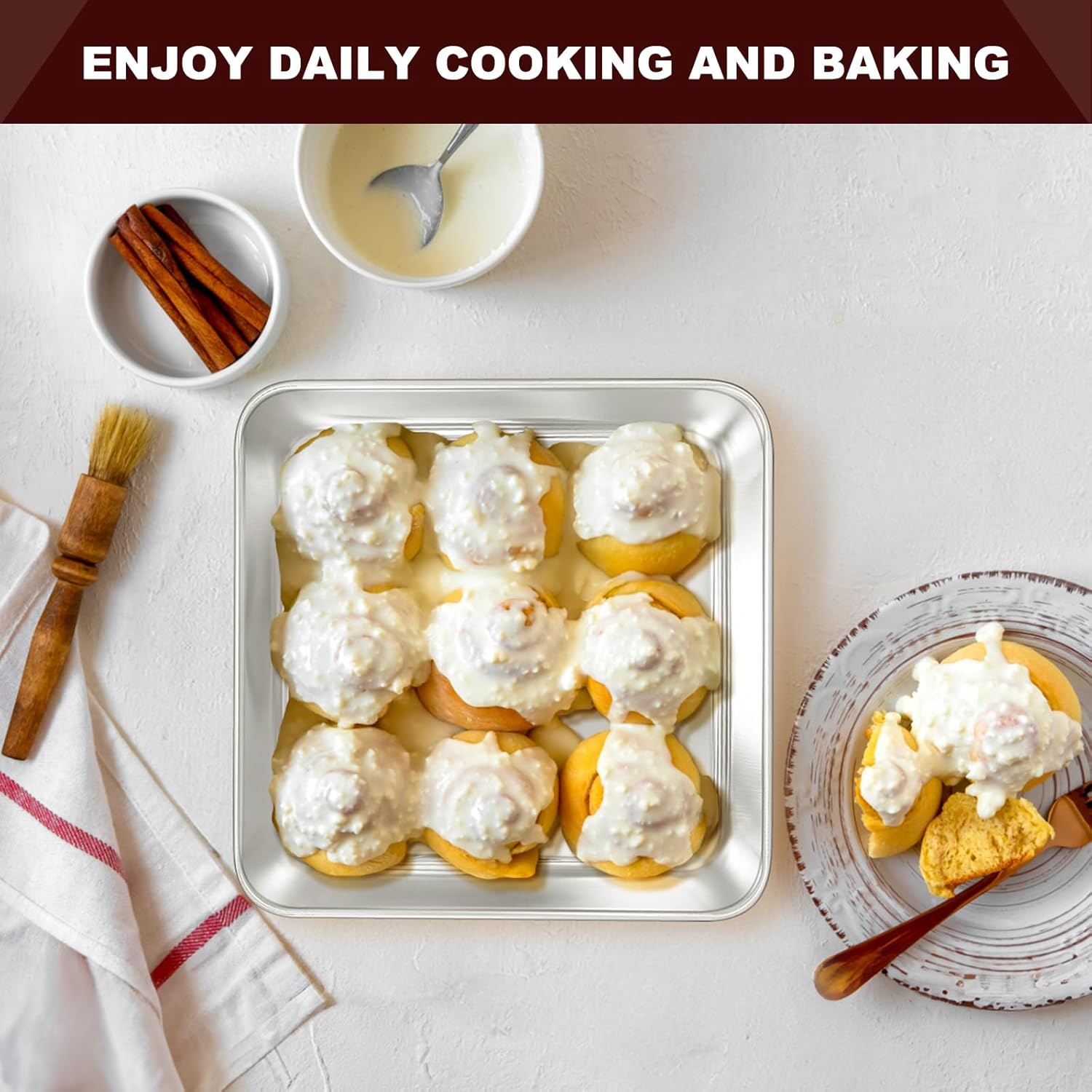 - PREMIUM STAINLESS STEEL CONSTRUCTION: Crafted from high-quality stainless steel without chemical coating, these square cake pans feature excellent durability and rust resistance. They can withstand high temperatures, ensuring long-lasting use for all your baking adventures, from roasting meats to baking casseroles and cookies.