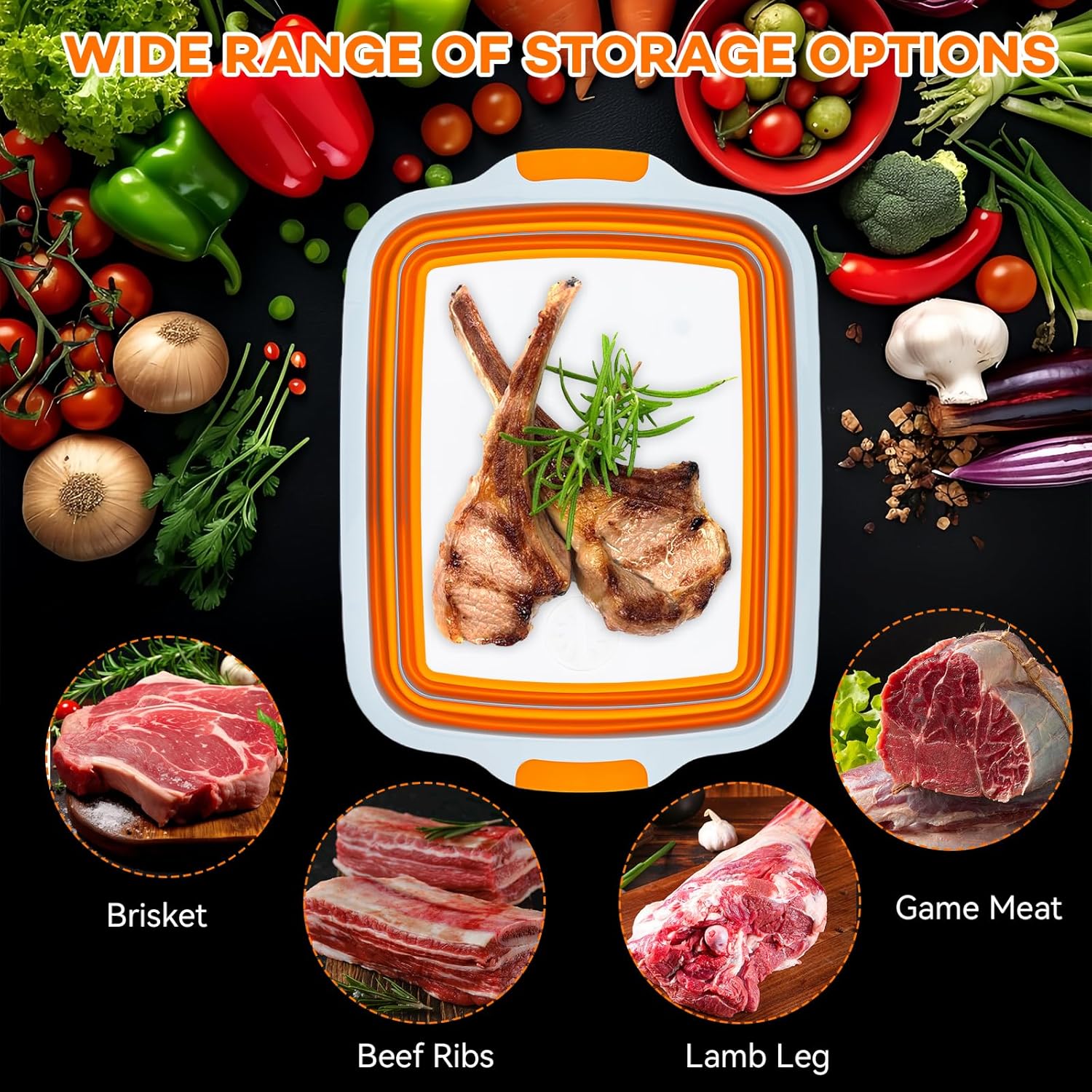 Collapsible BBQ Prep Tub with Cutting Board & Lid – 7.95 Gal / 30L Space-Saving Food Container – BPA-Free Heavy-Duty Plastic, Dishwasher Safe with Drain Hole – Offset Smoker, Backyard & Grilling
