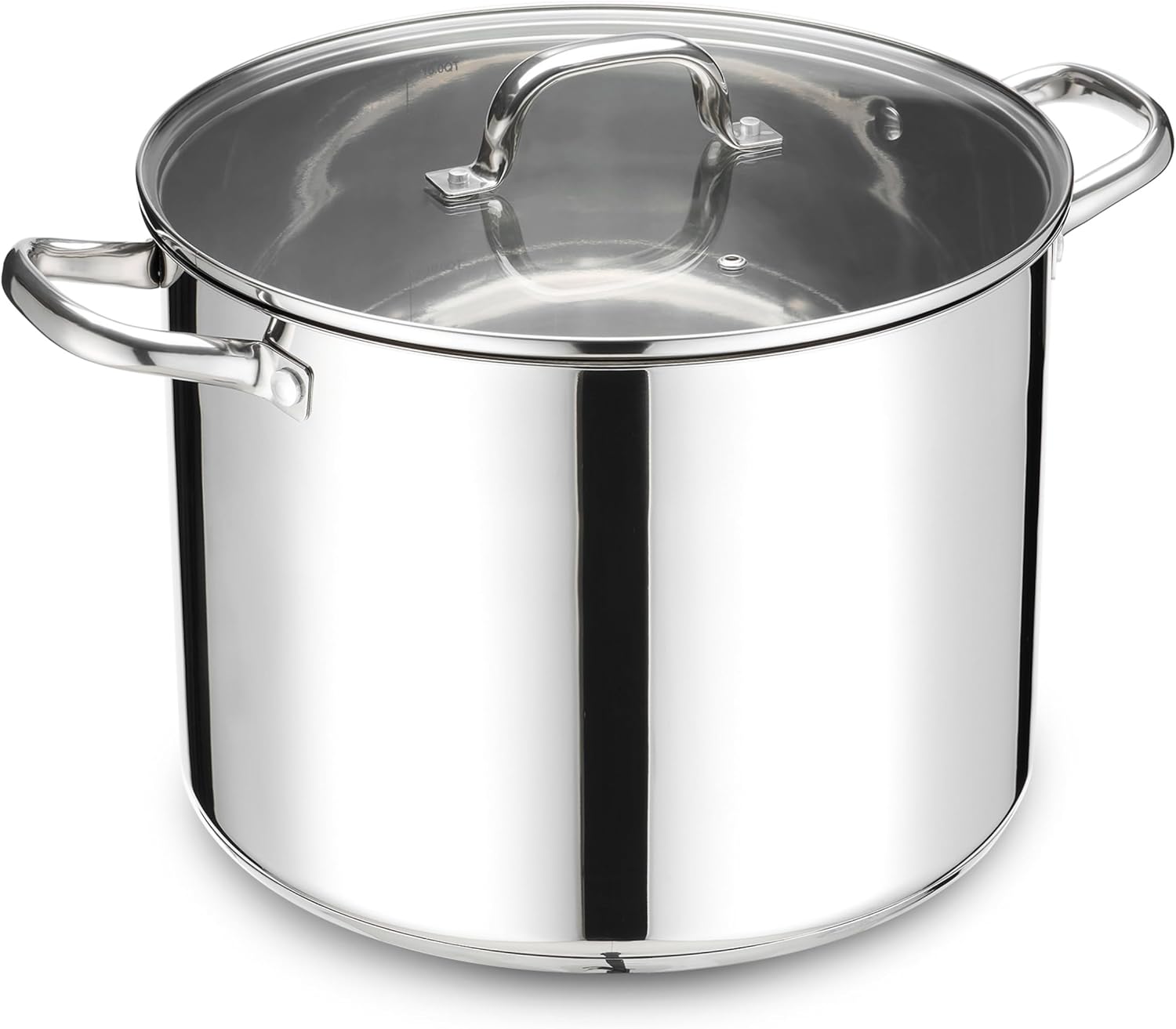 - Food grade material, 16qt stock pot is crafted of high end stainless steel without chemical substance or coating leaching into food ensures safe and healthy cooking, strong structure with a good resistance and corrosion provides long-lasting durability, heavy construction can hold large portions of food without deforming