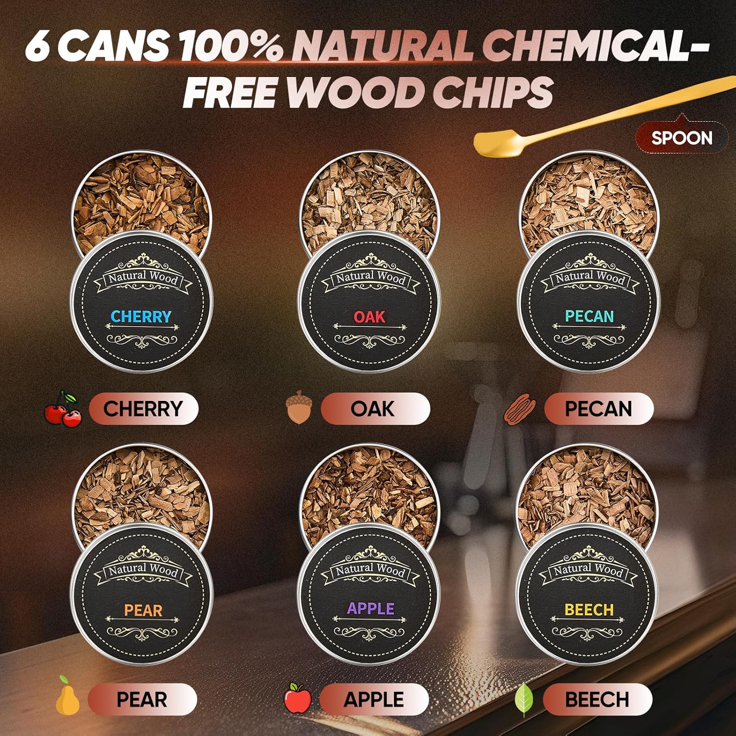 - 【ALL-IN-ONE SMOKING KIT】Elevate your whiskey experience with sakerplus all-in-one cocktail smoker kit, featuring 6 premium wood chips (oak, apple, pecan, cherry, pear, and beech) for rich, nuanced flavors. This bourbon smoker kit includes essential tools like a handy scoop for easy wood chip handling, a cleaning brush for maintenance, and reusable ice cubes to keep drinks perfectly chilled without dilution—ideal for whiskey lovers who appreciate craft cocktails and home bar sophistication.