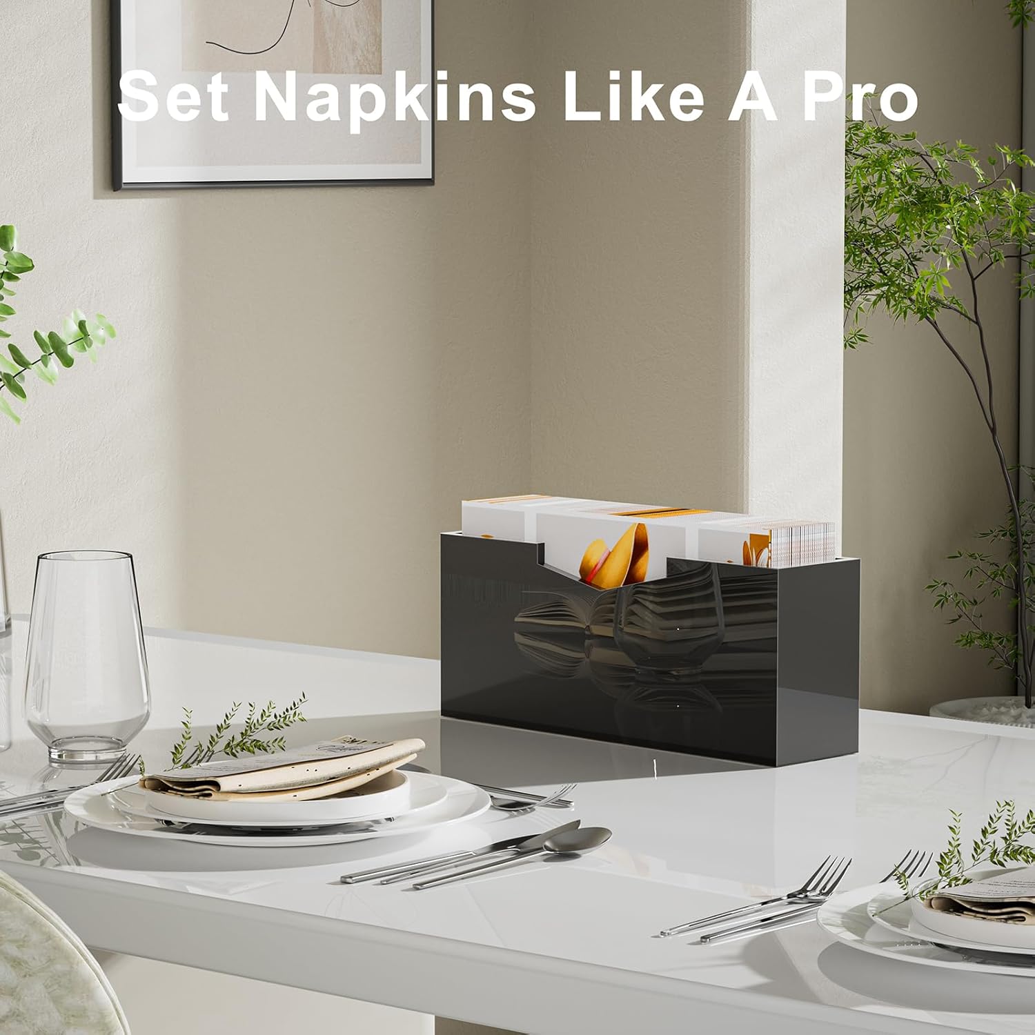 HELPLEX Black Acrylic Guest Towel & Napkin Holder - Waterproof Splash-Proof Vertical Design for Bathroom, Kitchen, Dining Table - Home Hotel Office Organizer (1-Pack)