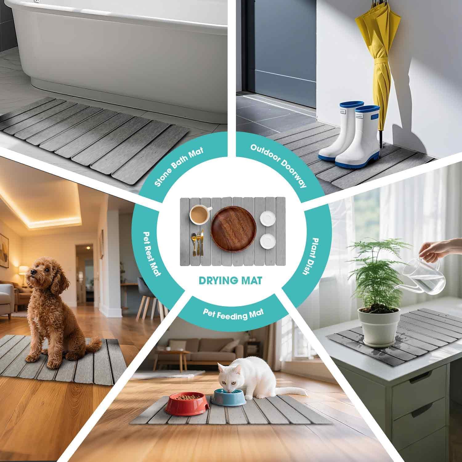 - Multifunctional Materials: This stone drying mat is made from natural diatomaceous earth, a sustainable and durable replace to silicone or fabric drying mat, is eco-friendly and safe, heat-resistant, helps protect countertop;