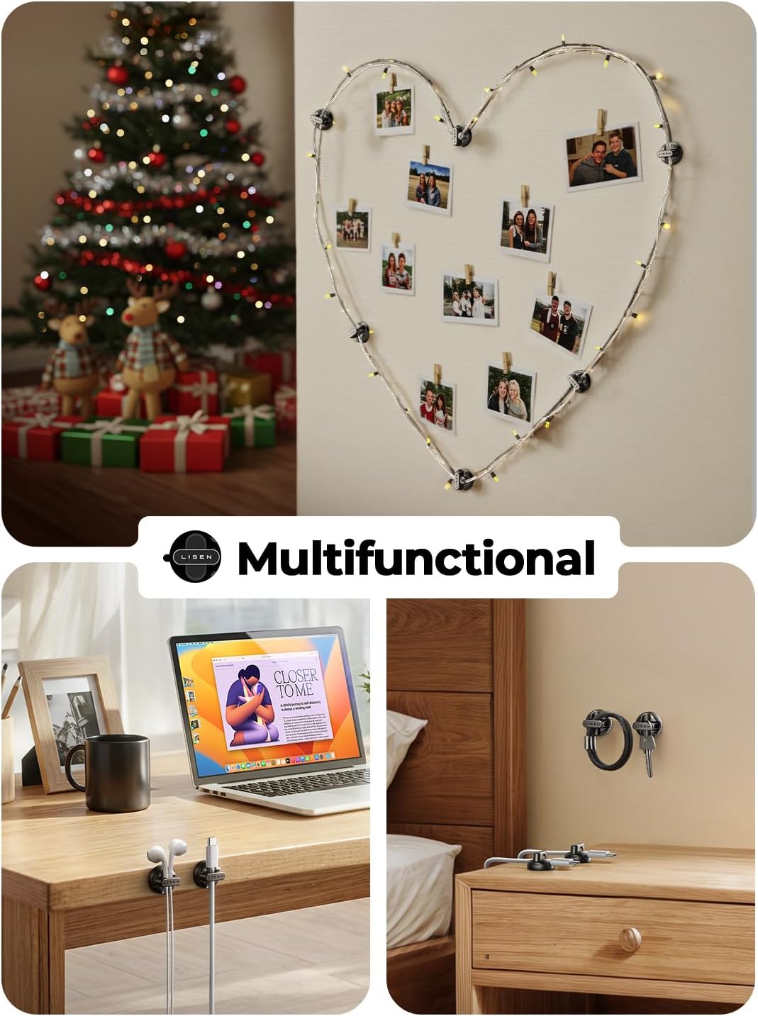 - Compact, Tidy Up Any Space: Measuring just 0.85" x 0.85" x 0.55" and weighing only 3g, LISEN cold holder is perfect for narrow spaces. With 8 individual clips included, you can neatly arrange cables on desks, nightstands, walls, or even in your car. This versatile organizer is a must-have accessory for keeping your space clean and clutter-free