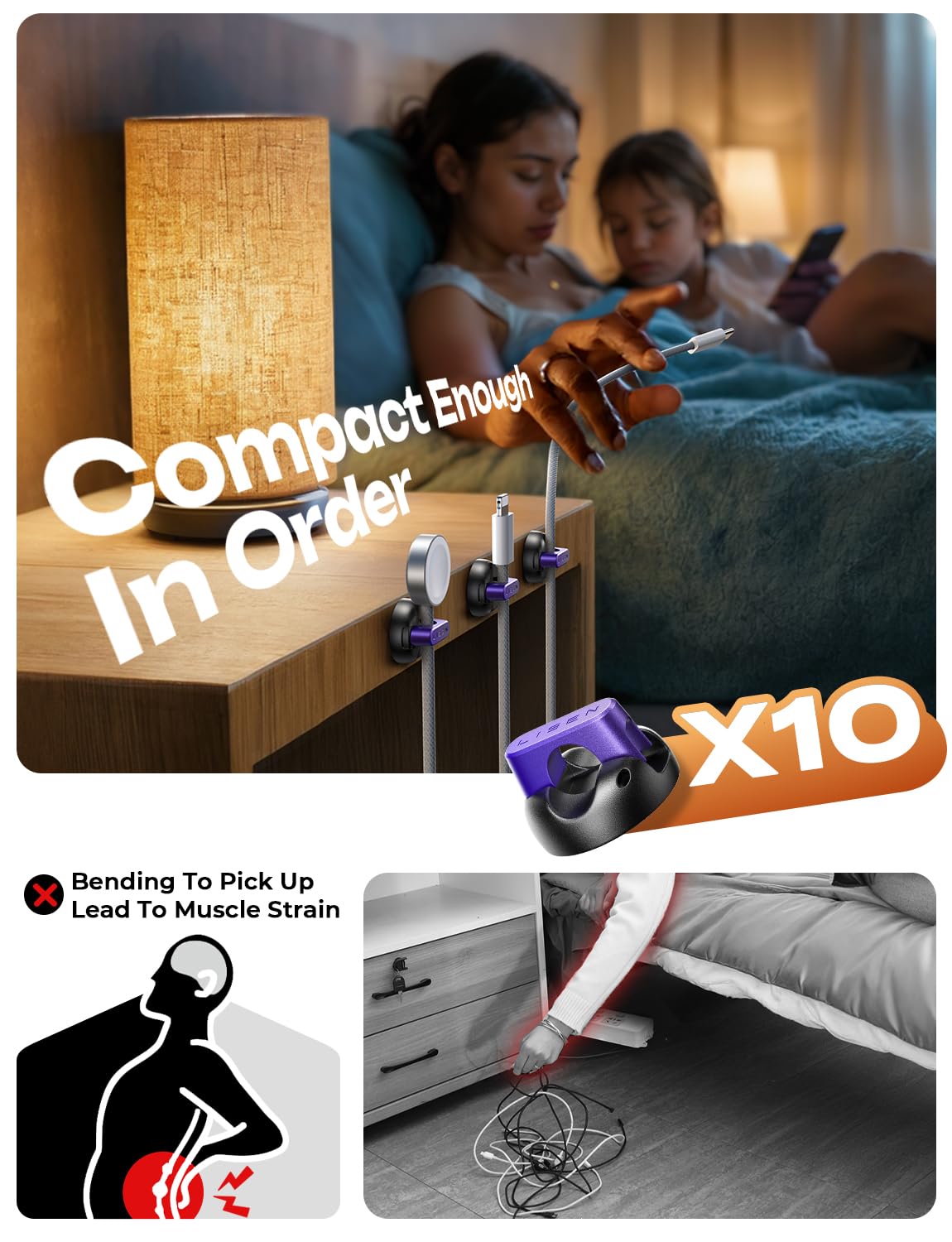 - Compact, Tidy Up Any Space: Measuring just 0.85" x 0.85" x 0.55" and weighing only 3g, LISEN cold holder is perfect for narrow spaces. With 8 individual clips included, you can neatly arrange cables on desks, nightstands, walls, or even in your car. This versatile organizer is a must-have accessory for keeping your space clean and clutter-free