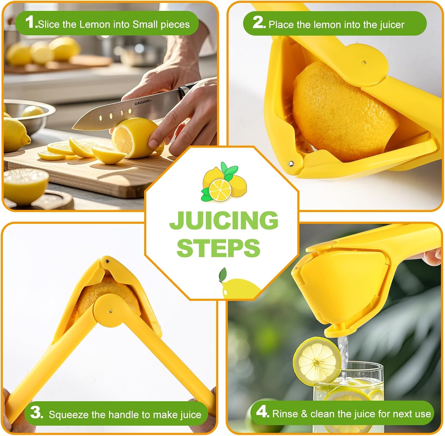 - More Juice, Less Effort: This Lemon juicer squeezer gets every last drop without straining your hands. Our ergonomically designed lime squeezer offers enhanced leverage that makes juicing faster and easier—even for those with weaker grip strength. With just one press, you'll extract more juice from lemons, limes, citrus or small oranges, making this tool essential for busy kitchens, bartenders, or daily meal prep.