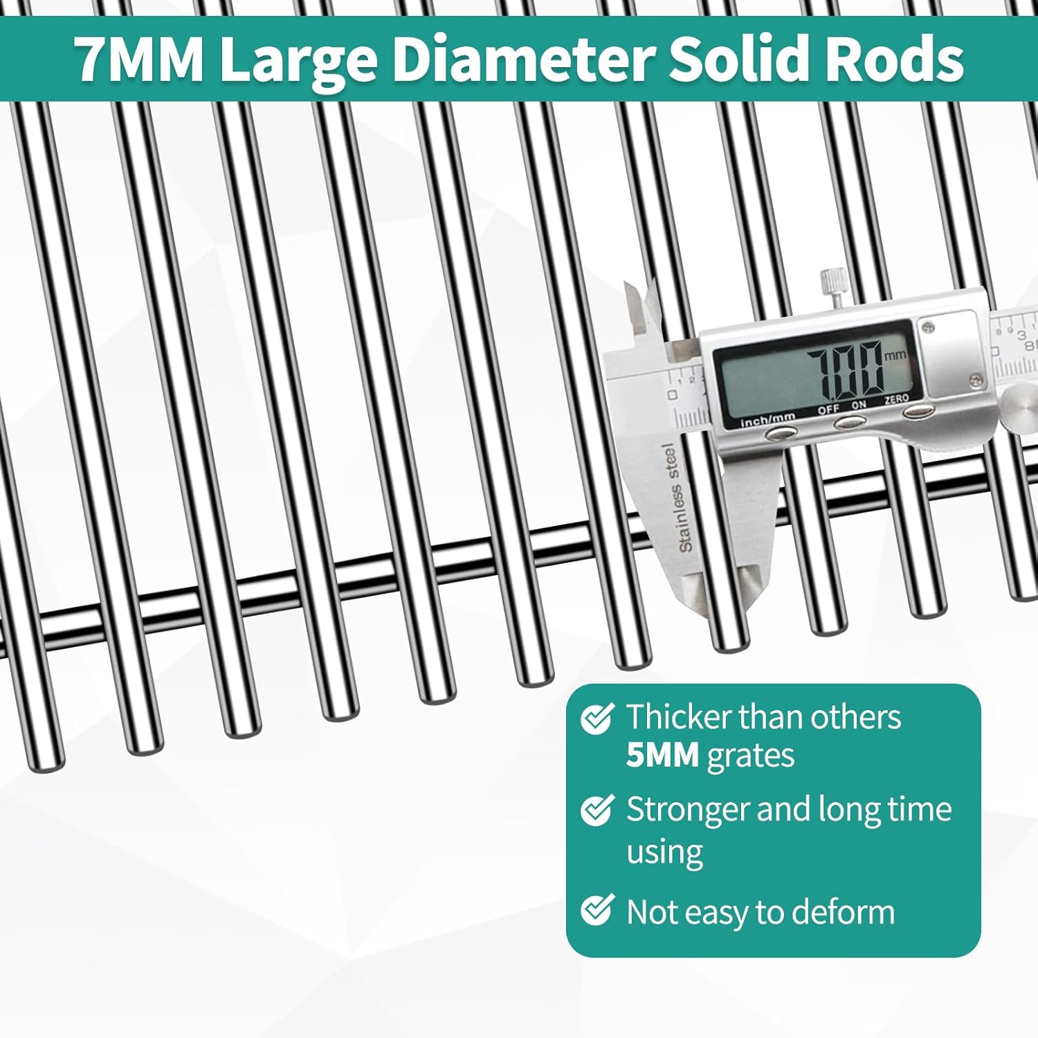 - 【Durable & Easy to Clean】Stainless steel will not rust and more durable. After using the cooking grill grate, just use a grill scrubber brush and soap to clean, then put it into water to soak. Steam and brush will separate the food residue from the cooking grids, very easy to clean. It should be cleaned in time, and then stored in a dry environment to prolong service life.