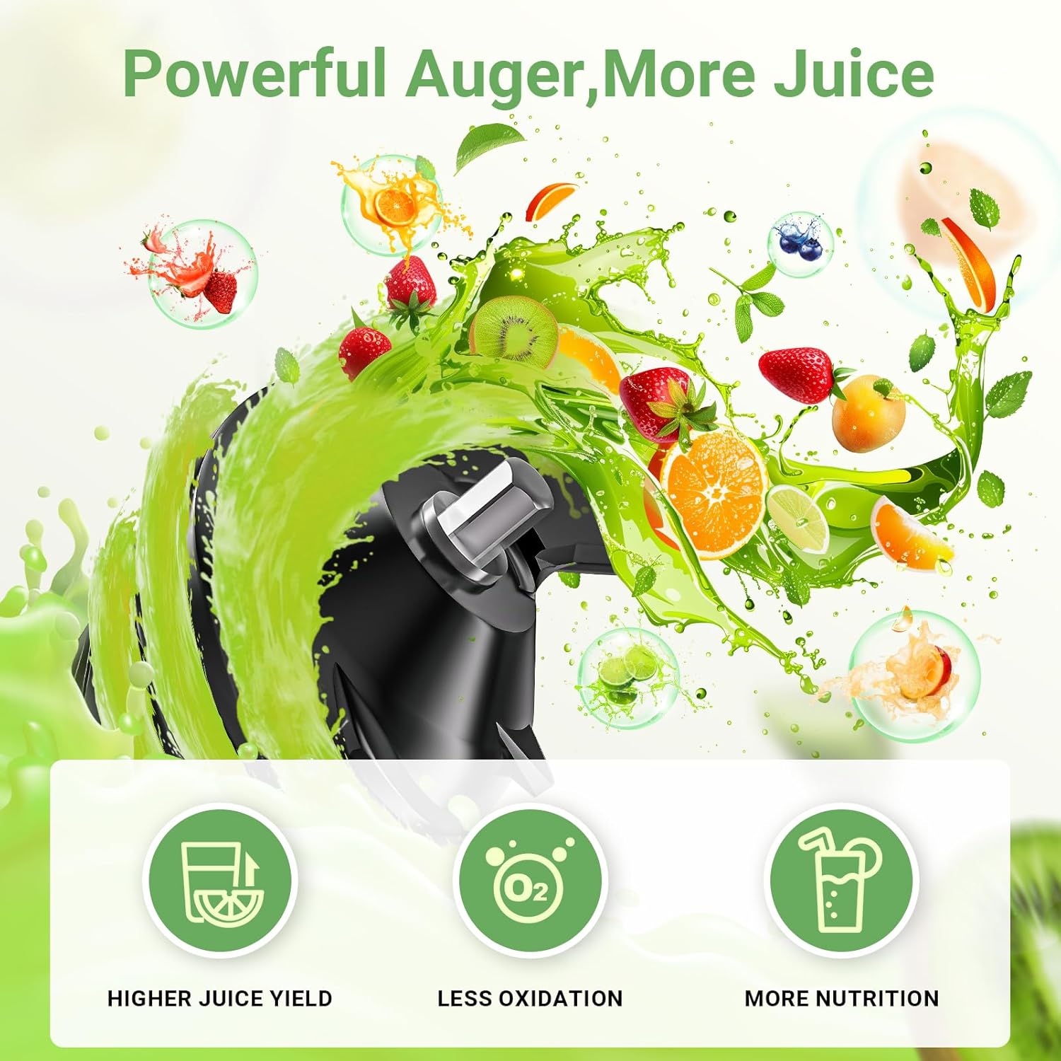- ✅【Upgraded Grinding Process&Quiet Motor&BPA-Free 】Our small juicer adopts advanced multi-stage progressive extrusion and low-speed grinding technology, combined with innovative 0.1mm ultra-fine composite grinding teeth, which reduces the destruction of the fruit cell structure, effectively inhibits the accumulation of heat and oxidative reactions for double the flavor and freshness, reduces the waste of nutrients.With 150W Silent motor, making it 30% quieter than traditional juicers. Enjoy fruit and vegetable juices!