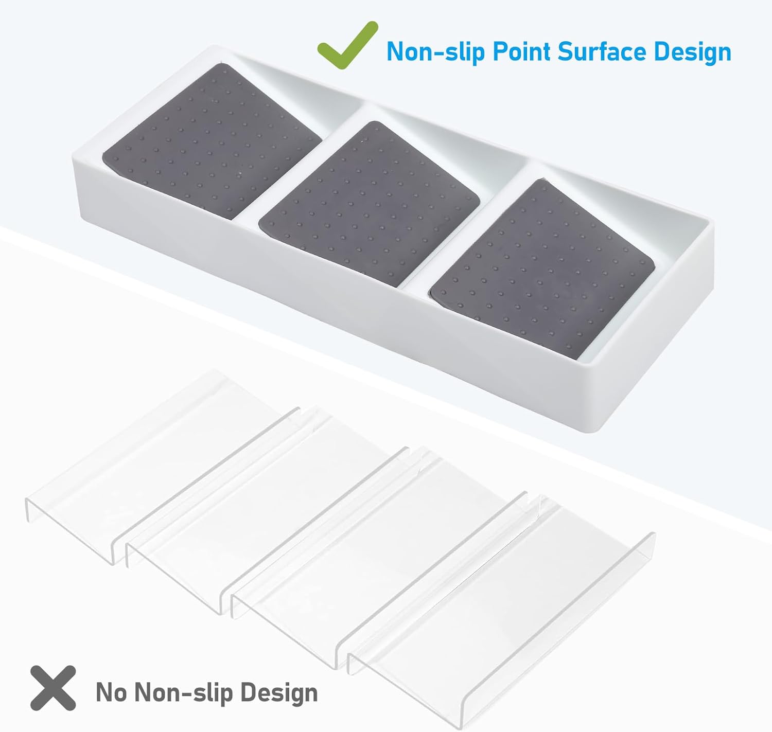 - SILICONE NON-SLIP DOTS SURFACE: The surface of the spice organizer for drawer is a polka dot non-slip silicone surface that holds the spices in place and prevents the items from moving when pulling the drawer and you don't have to worry about the spices pouring out