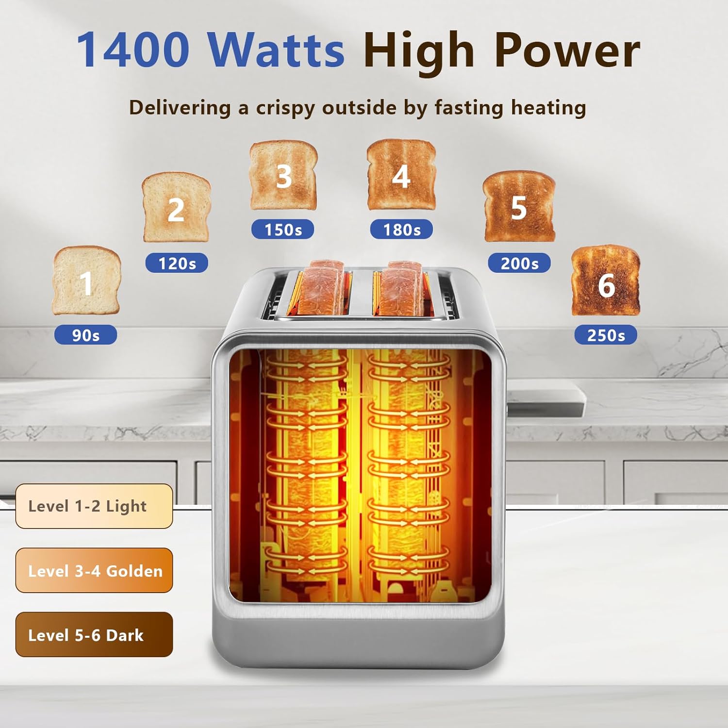 - 【1400W High Power for Perfectly Even Toasting】: Unlike standard toasters, our advanced 4 slice toaster with premium heating elements ensures no cold spots, delivering uniformly golden toast every time—whether you're toasting 1 slice or 4.