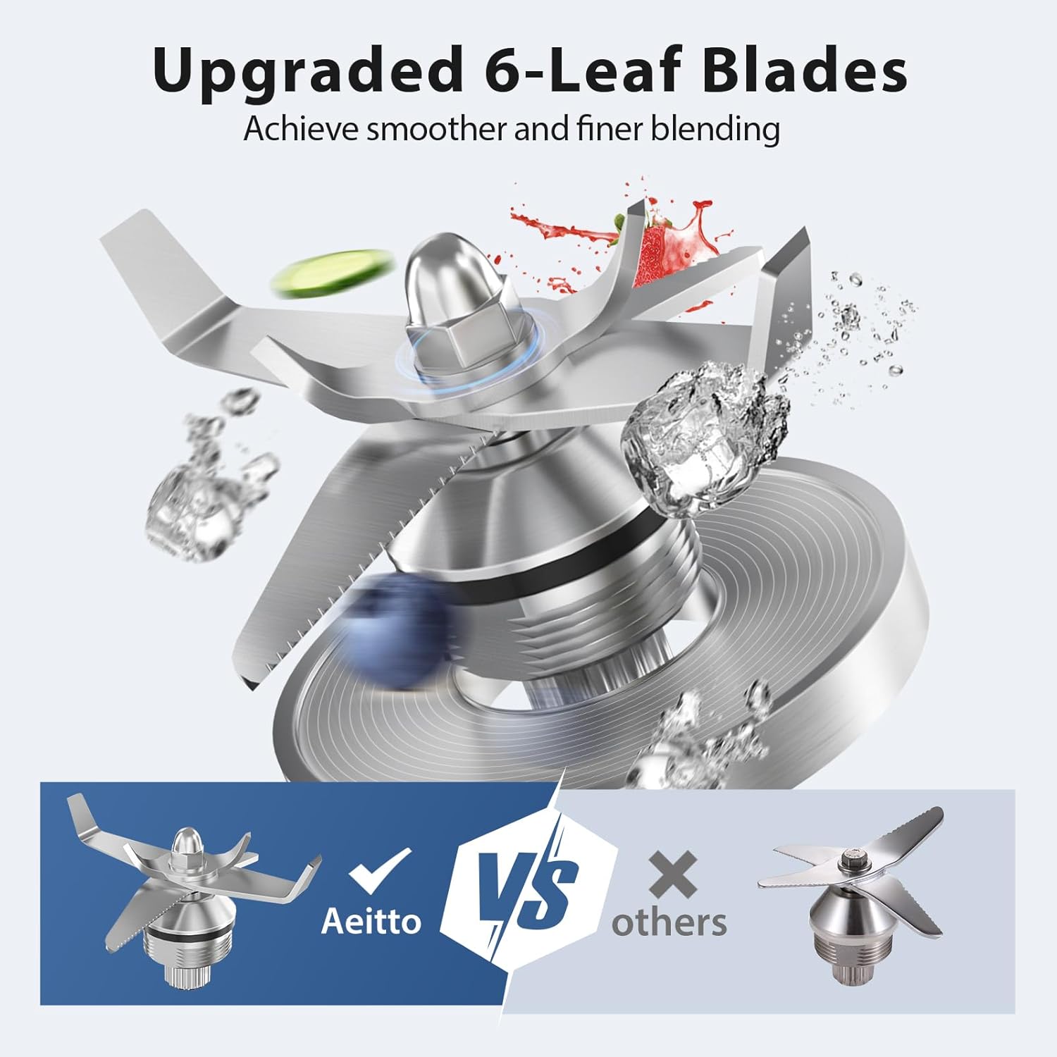 - 1800W Highest Power Motor: Aeitto blender features a professional-grade motor with up to 1800 watts of power and a peak speed of 25,000 RPM. This blenders for kitchen can quickly process ingredients and ice to create drinks, smoothies, and grind various powders. In addition, an overheat protection device is designed to ensure safer use.