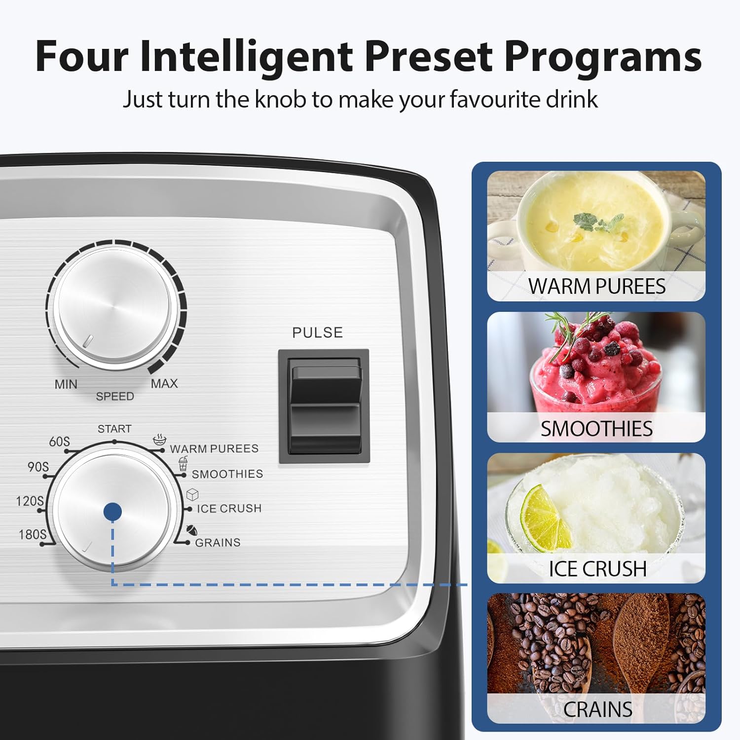 - Classic & Simple Operation: The smoothie blender's control panel is user-friendly and offers unparalleled convenience, making cooking easy and fun. The control panel is simple and easy to use with all function buttons visible at a glance.
