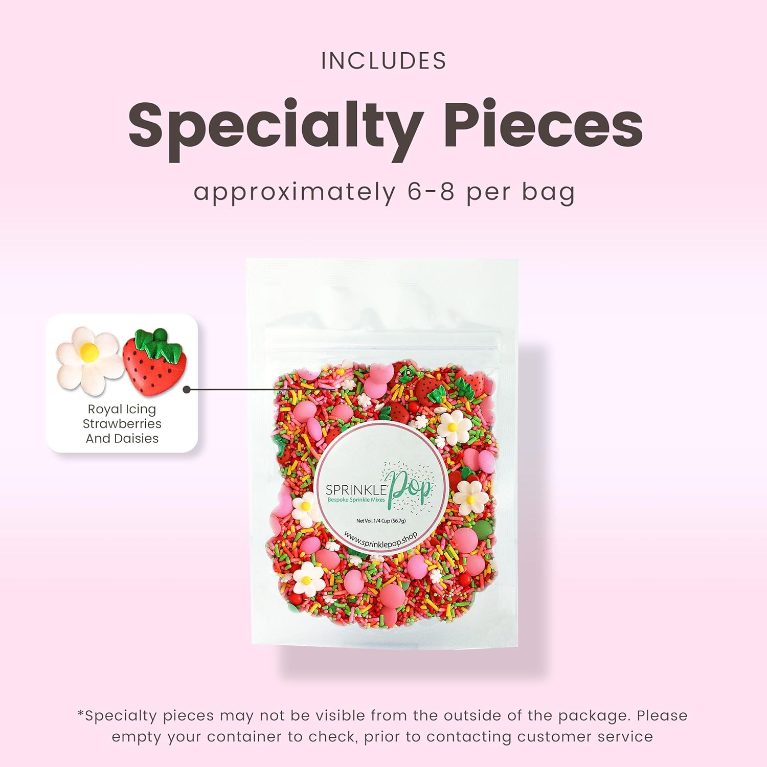 Sprinkle Pop Strawberry Daisy Sprinkle Mix| Red Lime Green Yellow Pink Sprinkle Mix with ~6 Strawberry & Daisies Royal Icing| Festive Sprinkles Made in USA for Decorating Cake Cupcakes Cookies, 2oz