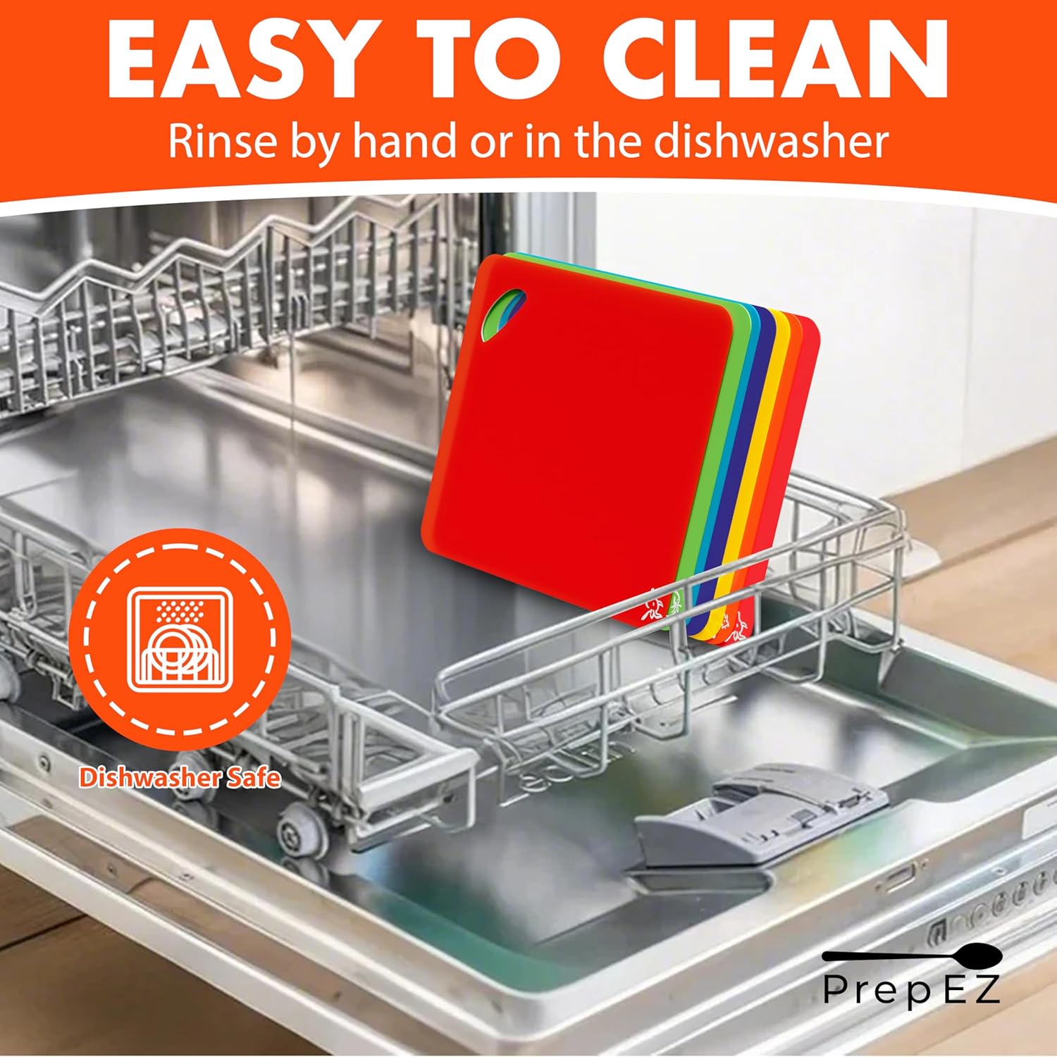 - [𝗦𝗔𝗬 𝗚𝗢𝗢𝗗𝗕𝗬𝗘 𝗧𝗢 𝗖𝗥𝗢𝗦𝗦-𝗖𝗢𝗡𝗧𝗔𝗠𝗜𝗡𝗔𝗧𝗜𝗢𝗡] – Stay safe with 7 color-coded cutting mats, each designated for meat, poultry, fish, fruits, veggies, dairy, or cooked foods, zero guesswork, total hygiene.