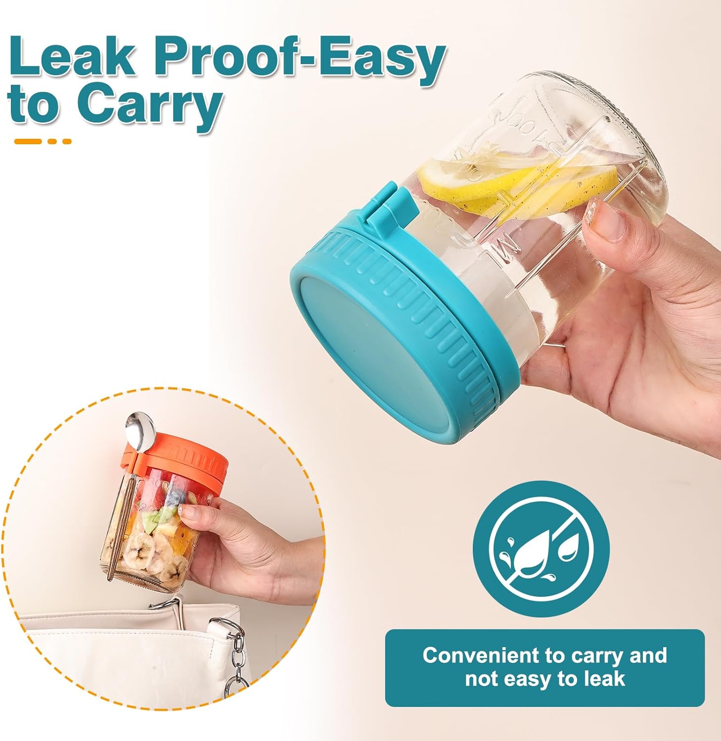 - Premium 6-Pack Overnight Oats Containers with Lids: Food-grade thick glass mason jars (16oz) with leak-proof airtight lids in 6 colors. Each BPA-free & lead-free jar includes a stainless-steel spoon + individual removable compartment for ingredient separation.