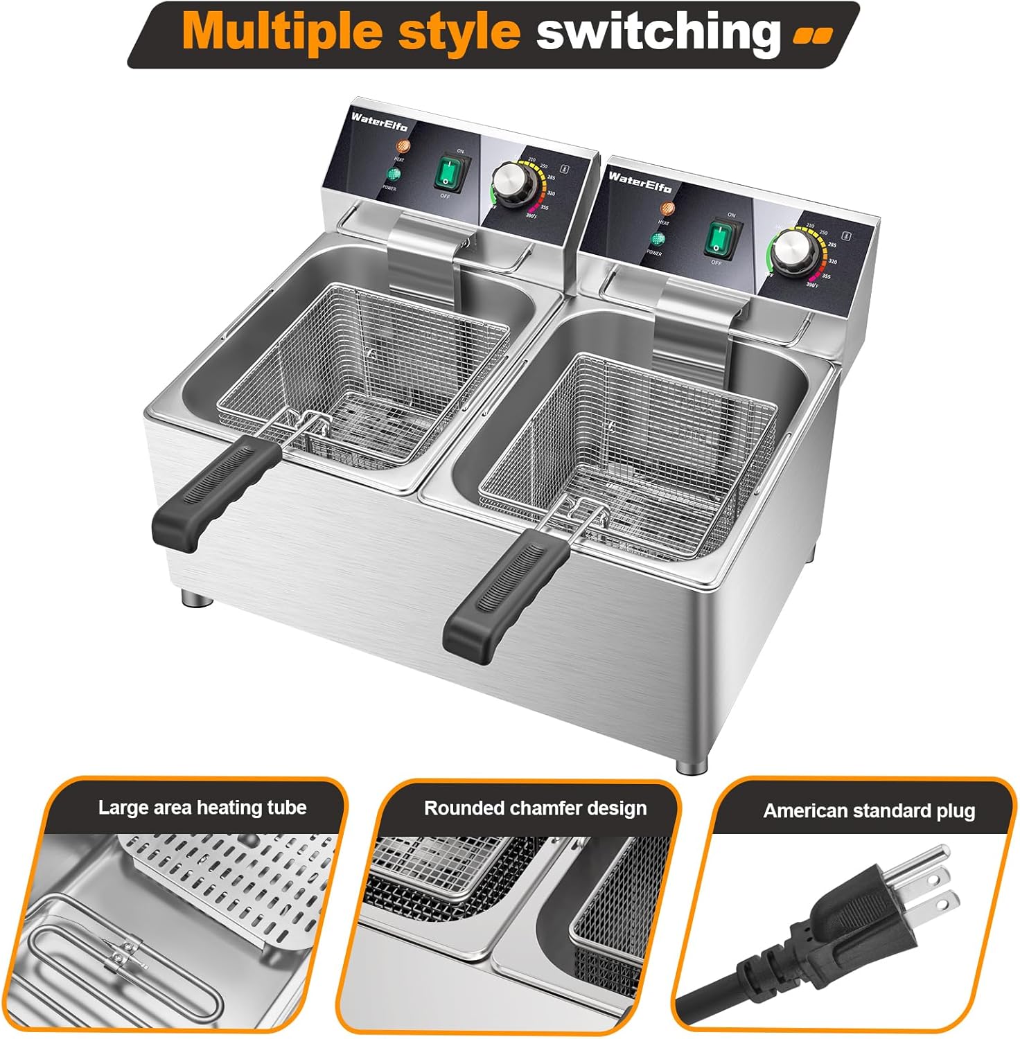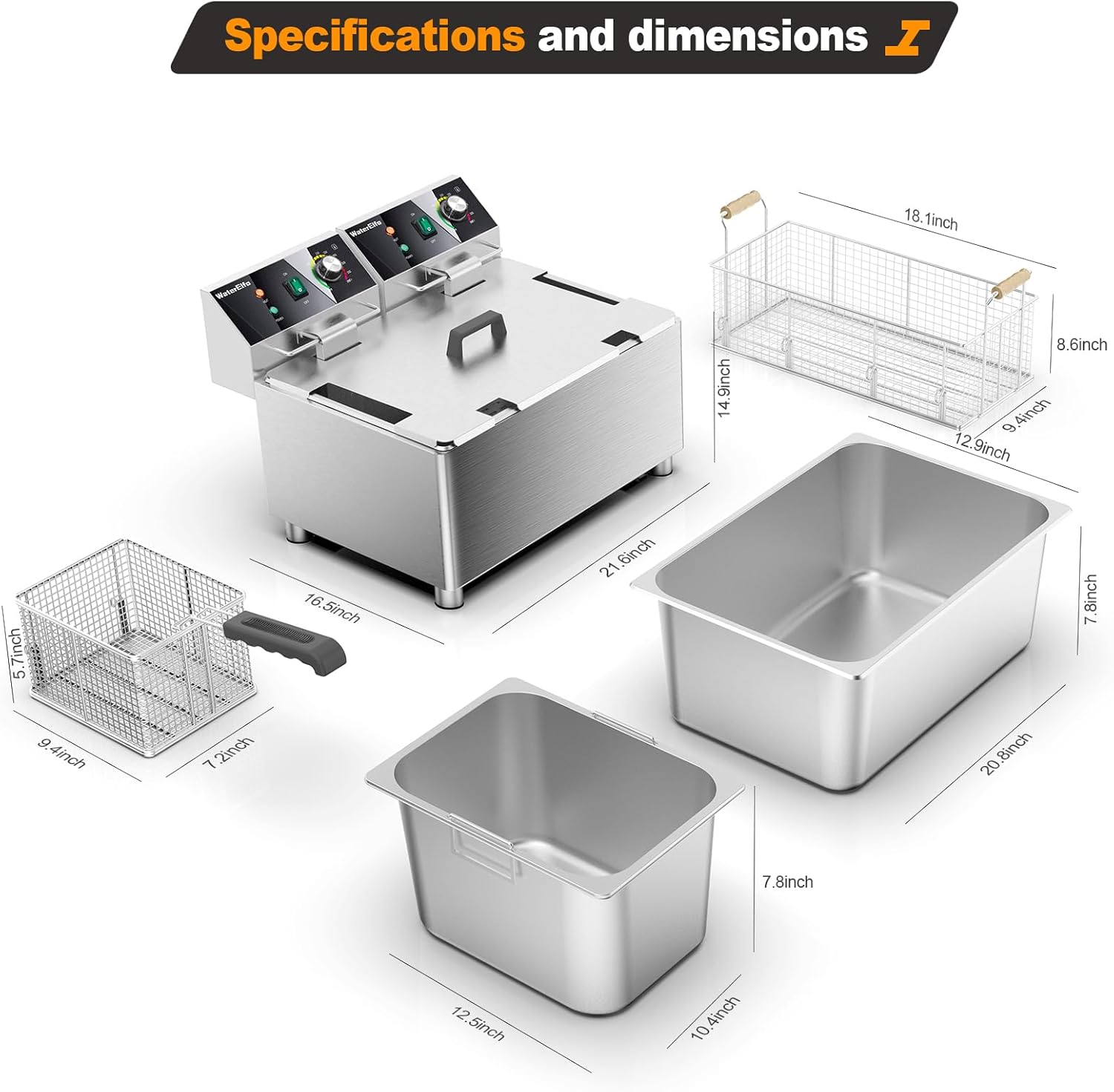 - Versatile Applications & Safety Tips:Perfect for commercial deep fryer with basket needs, including fries, onion rings, doughnuts, and more. Safety reminder: Always add oil before powering on to avoid dry burning. Ideal for restaurants, snack bars, food trucks, and home catering.