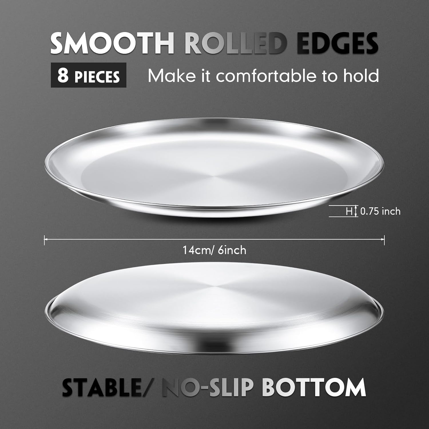 Thenshop 8 Pieces 6 Inch Pizza Pans Bulk Stainless Steel Sets Round Bakeware Pizza Trays for Oven Kitchen Baking Home Restaurant Safe Sturdy Reusable Easy Clean (Matte Silver)