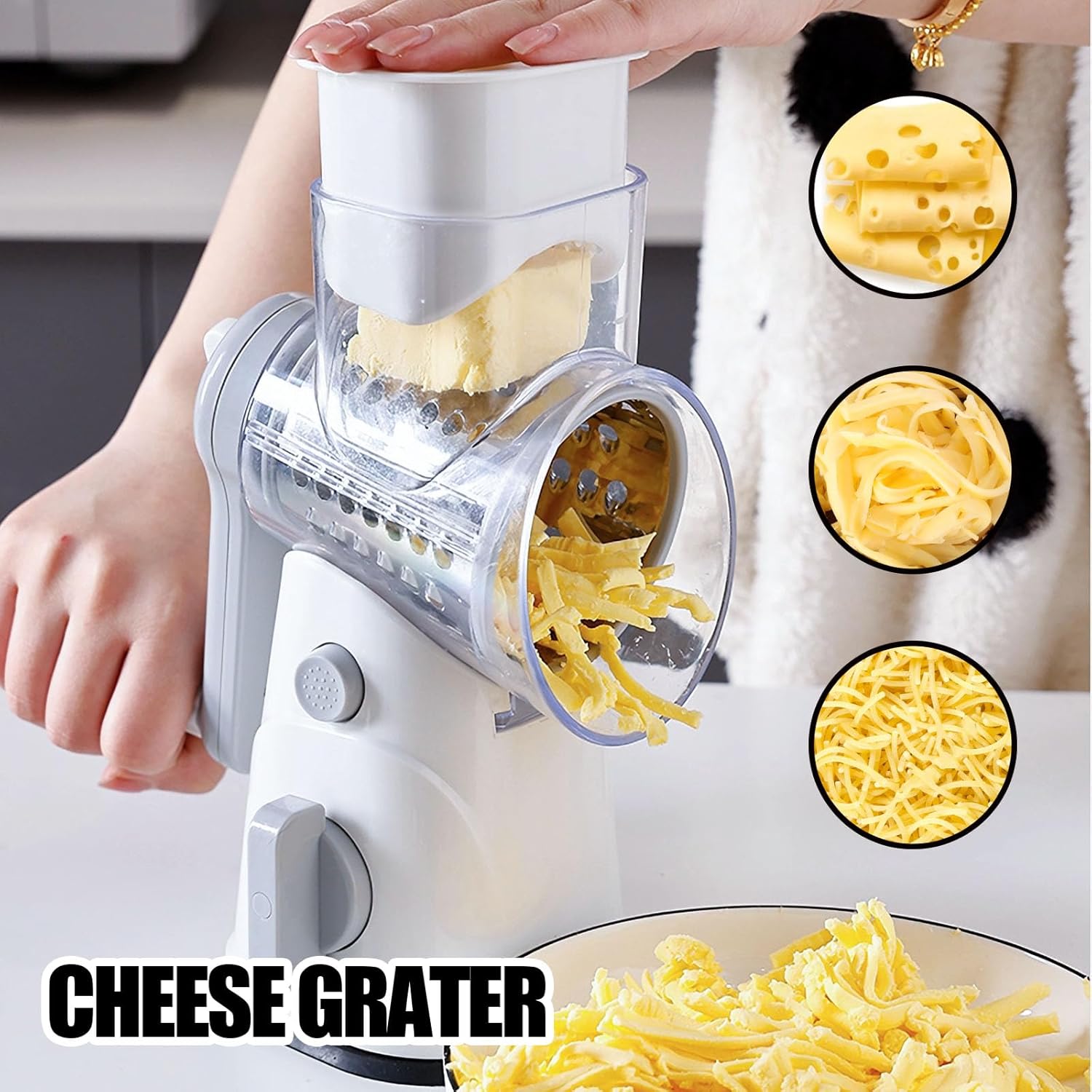 RAINBEAN Rotary Cheese Grater for Kitchen, Hand Crank Cheese Shredder with 3 Interchangeable Blades, Rotary Grater with Handle and Strong Suction Base, for Vegetables, Fruit, Nuts