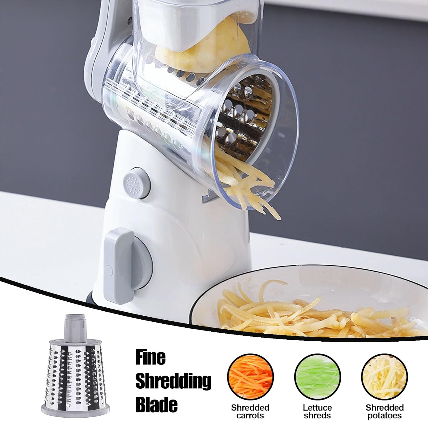 - Humanized Design: The drum-style rotating vegetable grater is equipped with a powerful suction cup base to ensure stable placement on the table. The handle-equipped rotating cheese grater is efficient and easy to operate! Components can be easily disassembled for convenient and simple cleaning. It also saves storage space, keeping your kitchen cabinets clutter-free