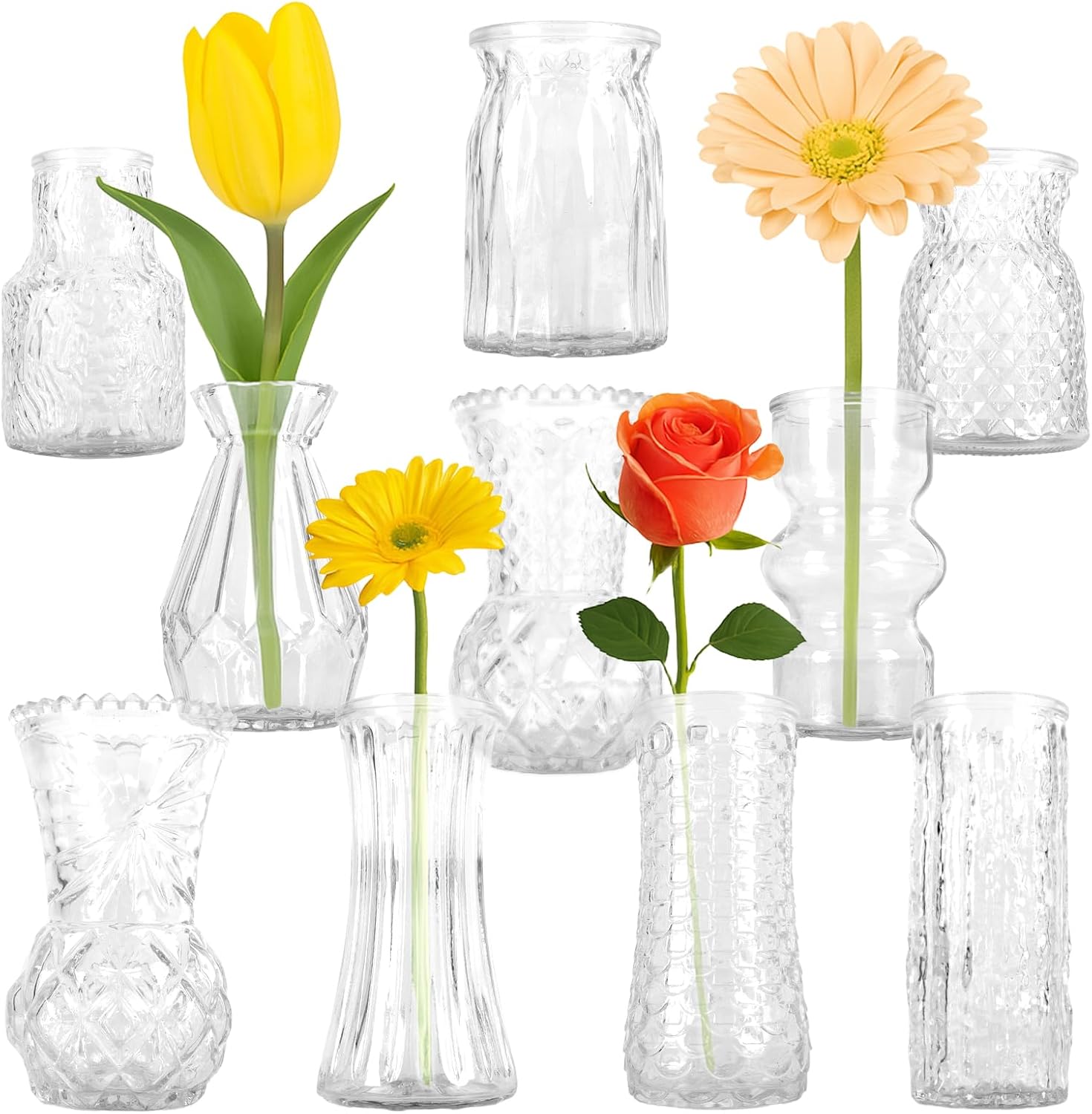 Glass Bud Vase Set of 10 Pcs, Small Clear Bud Vases for Flowers, Vintage Vases for Centerpiece Table Wedding Decorations Home Decor Glass Bottles for Birthday Party Anniversary