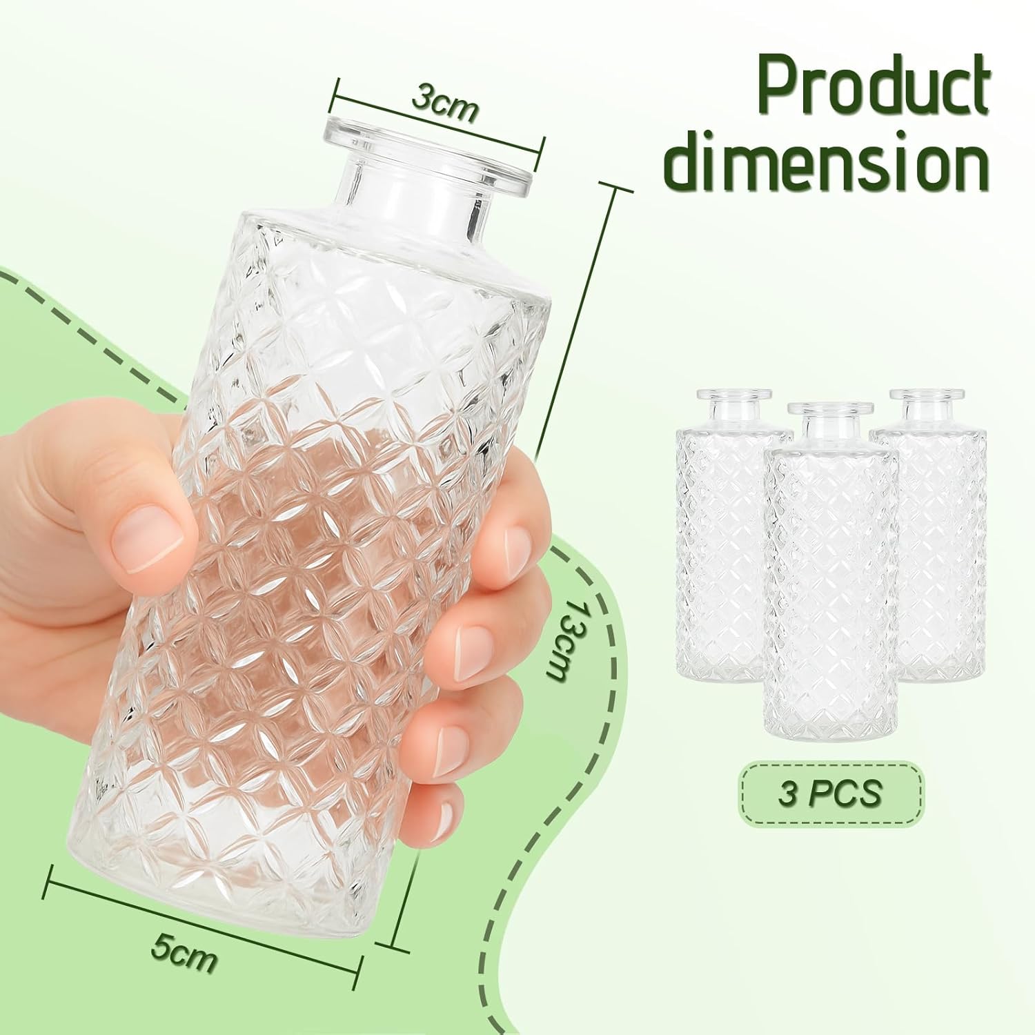 Glass Bud Vase Set of 3 Pcs, Small Clear Bud Vases for Flowers, Vintage Vases for Centerpiece Table Wedding Decorations Home Decor Glass Bottles for Birthday Party Anniversary